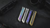 The Quoll has a lightweight, precision titanium handle with modular inlays for personalized style and easy swapping, fostering a sharing community. Variants feature Rainbow Damascus, Crystallized Titanium, Titanium Damascus, or textured zirconium inlays, meeting diverse style preferences.