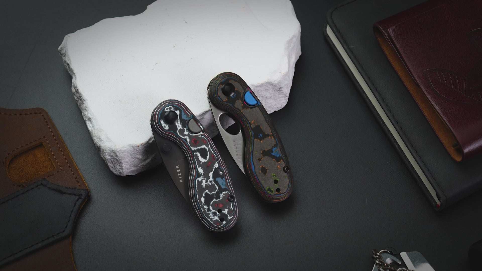 Microbe™ | Kizer Button Liner Lock™ | Ultra DLC | M390 | Fat Carbon | KizerB™ 2742A2