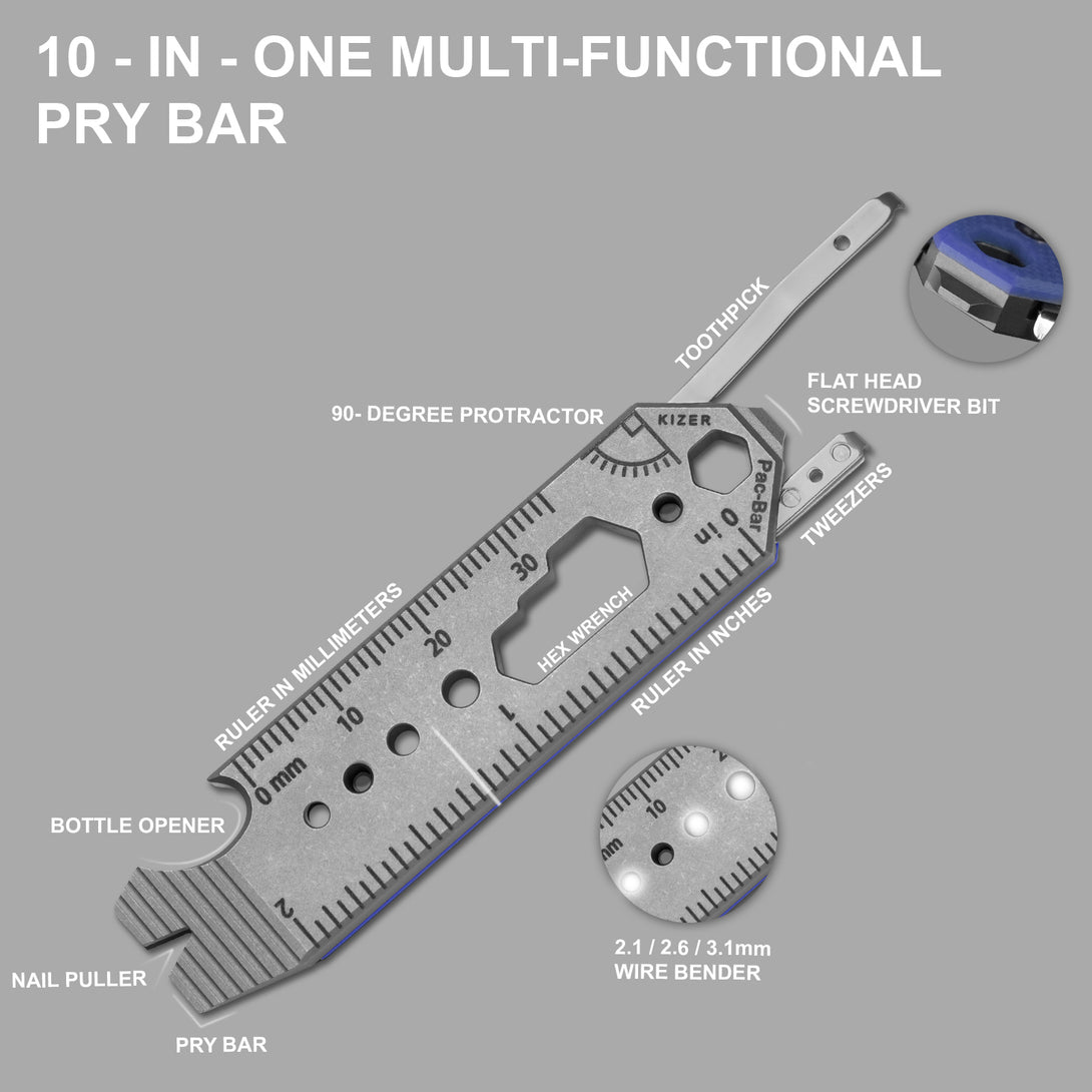 A compact and versatile EDC multitool, featuring a flathead pry bar, removable Phillips bit, bottle opener, and a built-in ruler. Precision-machined with an anti-slip grip, it's a lightweight and durable essential for quick fixes, everyday tasks, and on-the-go use.