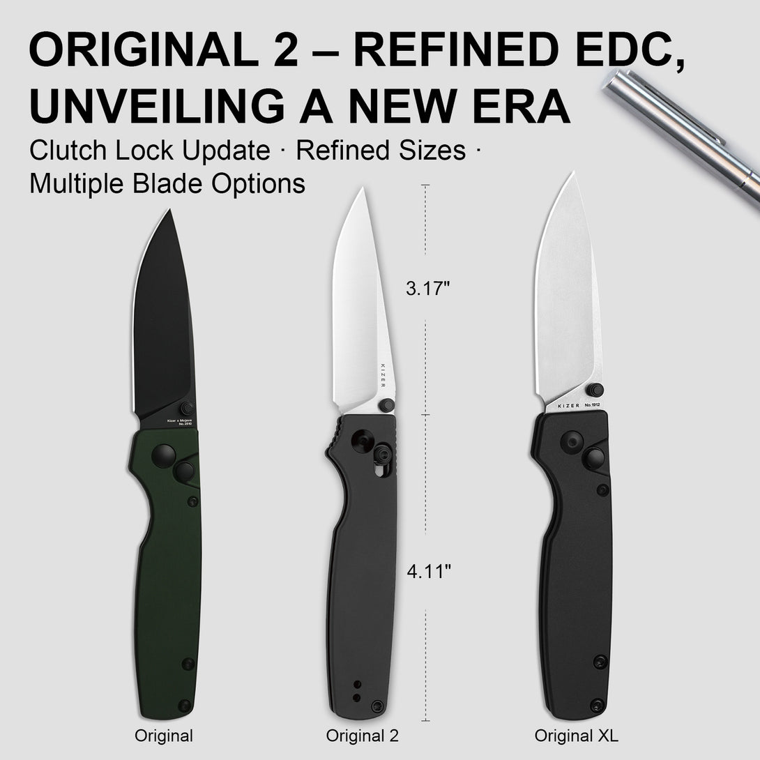Original 2 is updated to a Clutch Lock for smooth, reliable operation, with refined size options to fit different carry styles. Multiple blade shapes, balanced proportions, and premium materials deliver a versatile EDC that blends durability with elegance—ideal for both daily use and collecting.