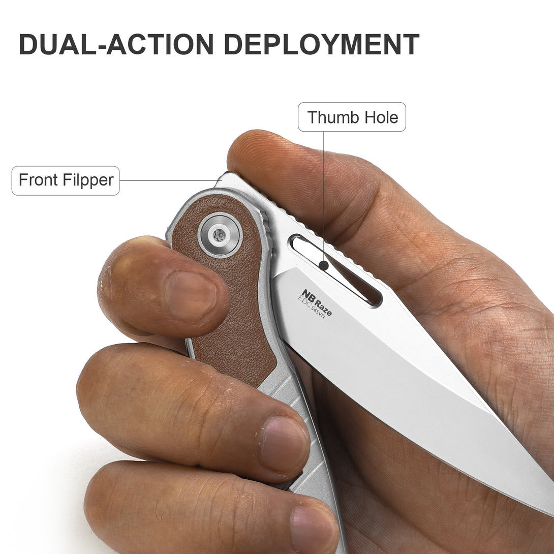 This dual-action system gives you two independent opening options: use the front flipper or thumb hole. Switch instantly between methods with just your thumb or finger. Works reliably even when wet, and delivers fast, solid one-handed deployment every time.