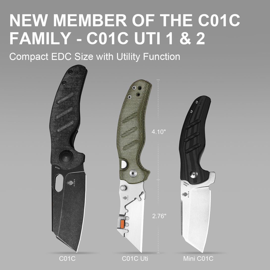 The C01C Uti 1 & 2 reinterpret the Mini C01C as compact utility folding knives. Available in screw and screwless versions, they keep the recognizable Sheepdog Knives design language while offering practical utility for daily cutting tasks.