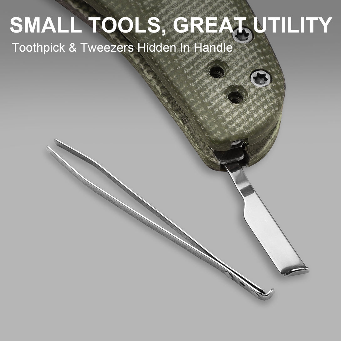 Smartly integrated small tools enhance EDC utility: the stainless steel toothpick and tweezers are discreetly housed inside the handle, enabling quick access while maintaining a streamlined exterior. Each package also features 5 extra replacement blades, boosting value and practicality for precision tasks.
