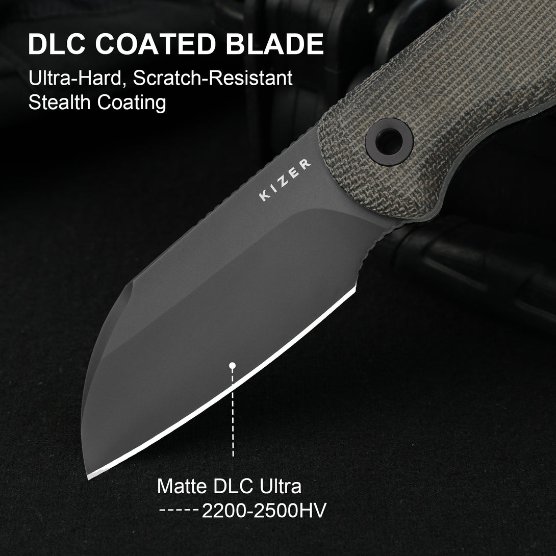 The blade is coated with a matte black Diamond - Like Carbon (DLC) coating, an ultra-hard surface that provides exceptional resistance to scratches, wear, and corrosion. The non-reflective finish offers discreet, low - profile appearance ideal for everyday carry and outdoor use.