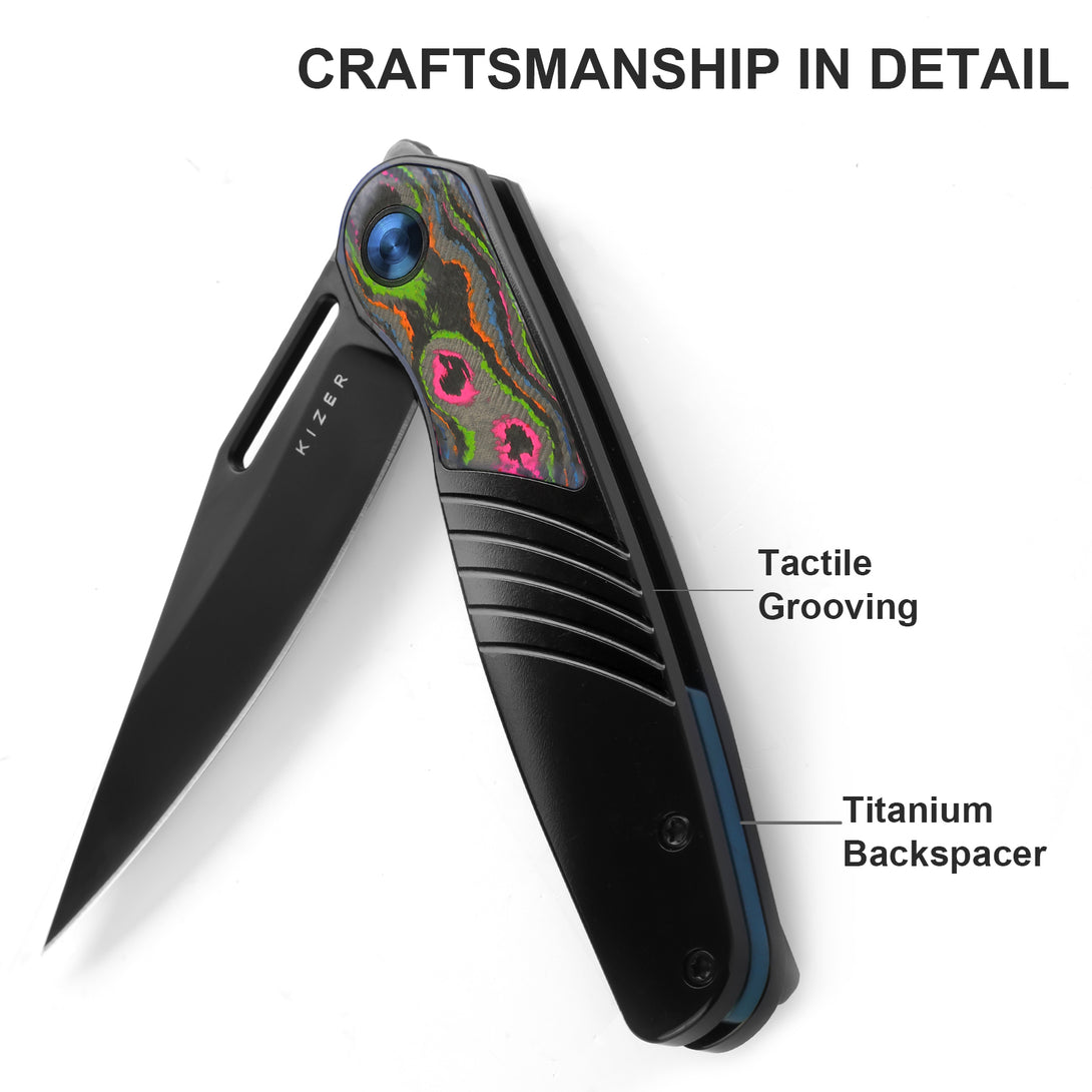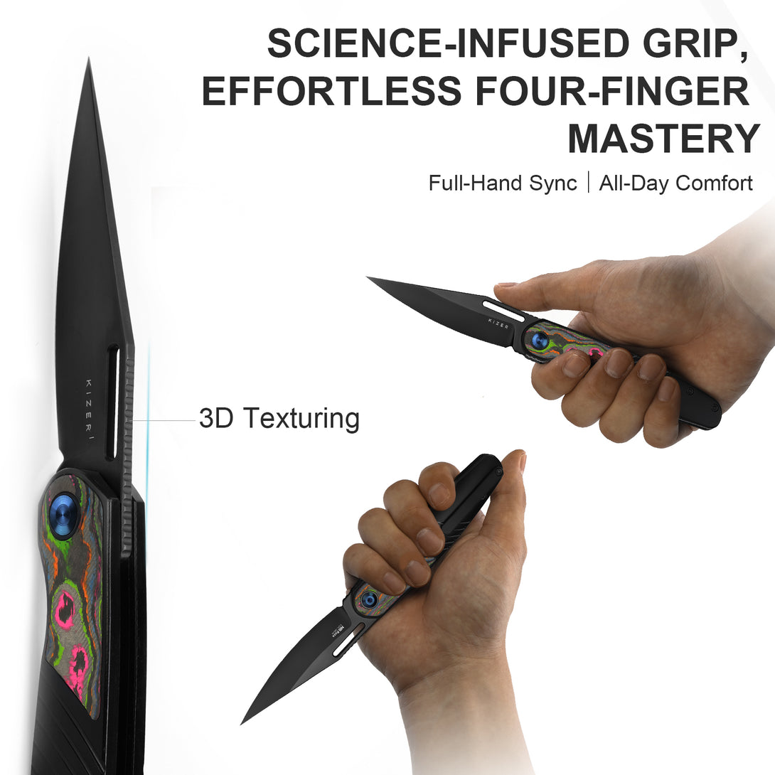 The double-drive design independently supports two opening methods: push the front flipper or pull the thumb hole. You can easily switch between them with your thumb or finger. It works the same way even when wet, and you can open and lock the blade quickly with one hand if needed.