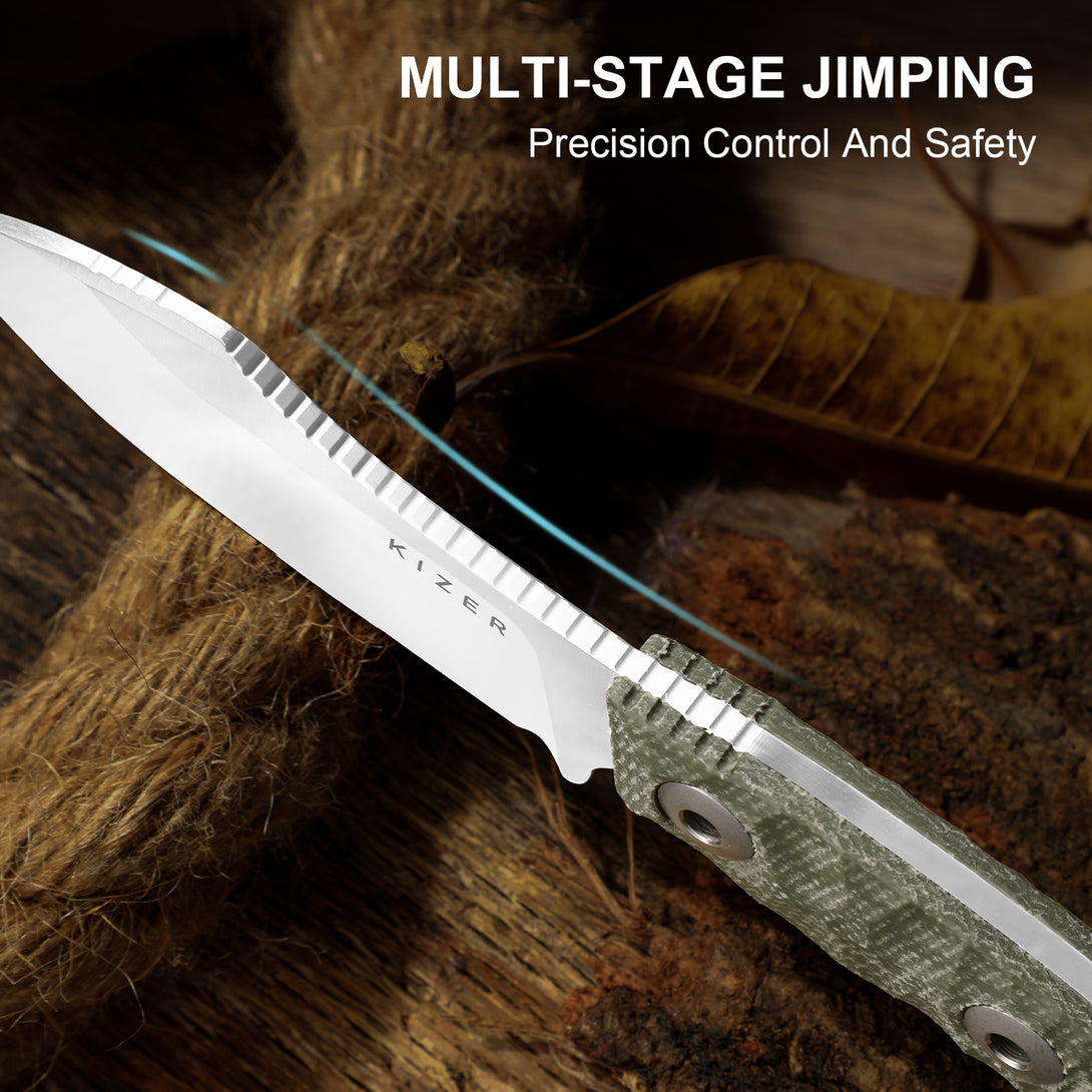 The multi-stage jimping along the spine delivers precise control for detailed work while preventing slips to enhance safety. This ensures a secure and comfortable grip across various cutting scenarios.