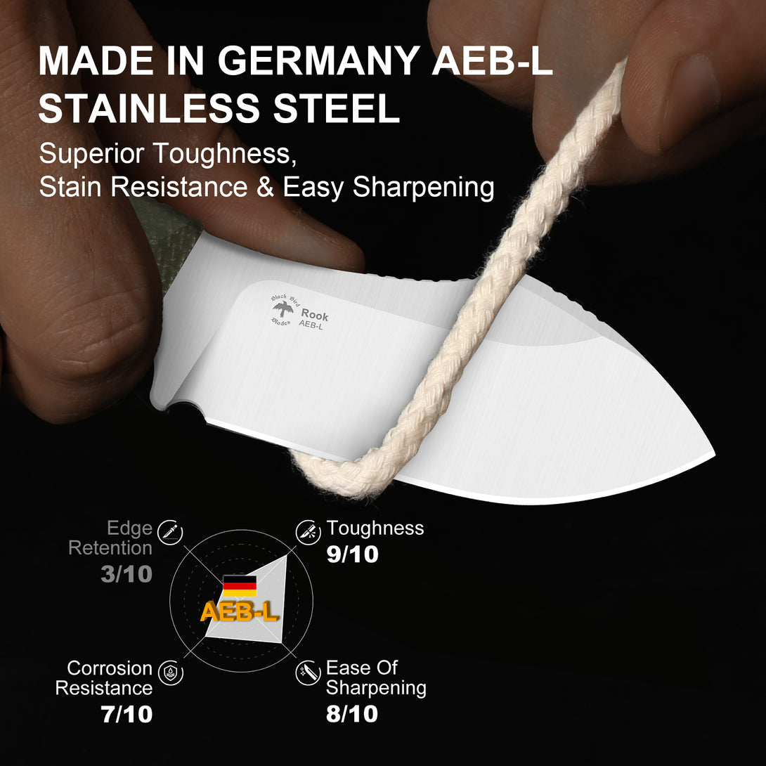 This blade is crafted from AEB-L stainless steel, which is highly regarded for its excellent toughness, good corrosion resistance, and ease of sharpening to a razor-like edge, ideal for daily carry and maintenance.