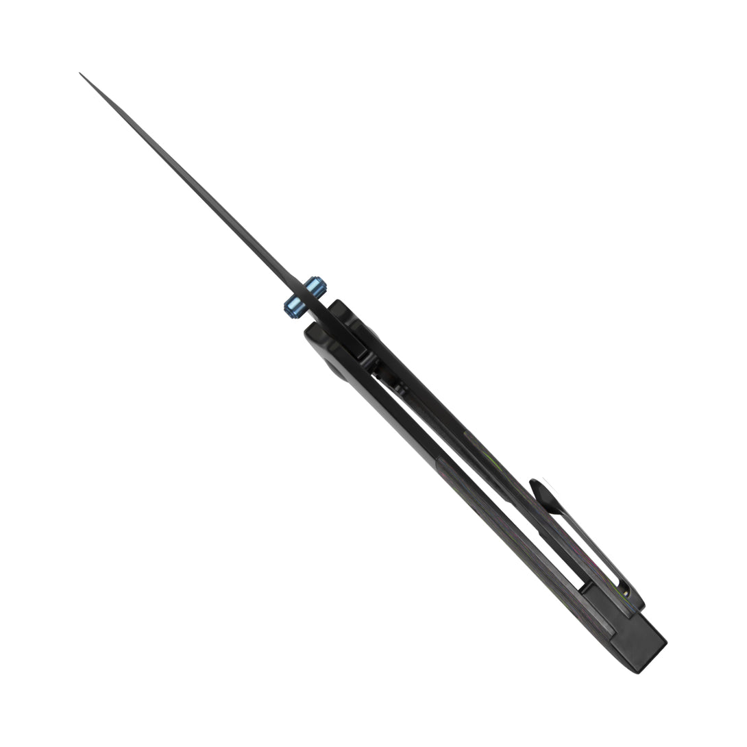 Precision-machined 3D titanium pocket clip delivers secure retention and a close fit against clothing. Featured exclusively on the Ki3690A2 variant, the polished DLC-Ultra coating enhances durability while complementing the knife’s overall design. Non-reversible for improved structural integrity and visual consistency.