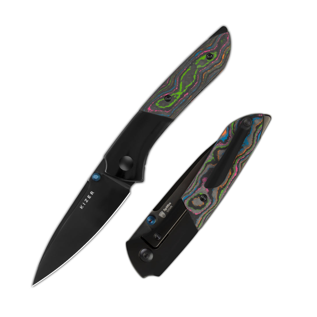 Spitfire | S35VN | Polished DLC | Titanium & Camo Carbon 80's | Ki3690A2