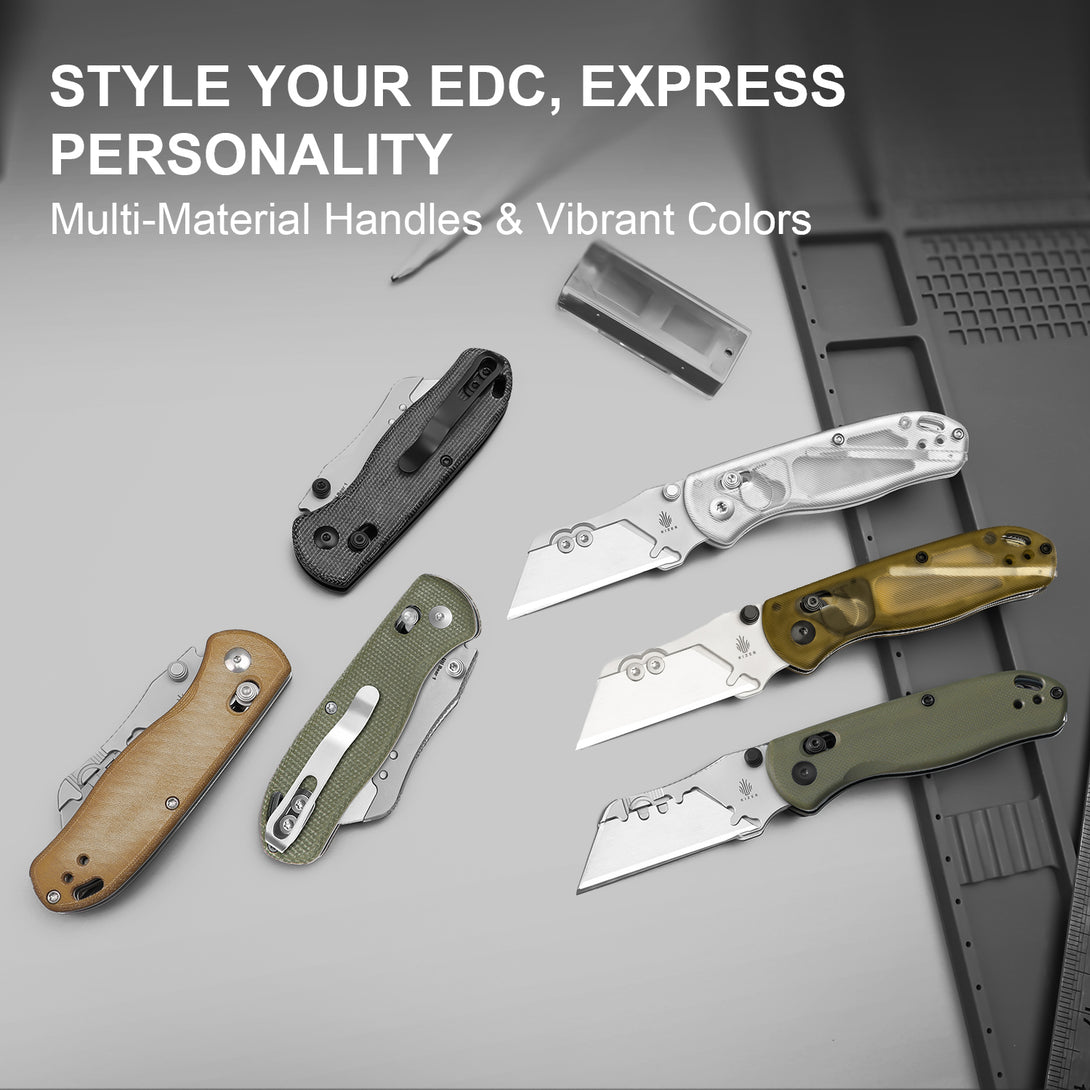 The trapezoidal blade crafted from SK5 & 5Cr15 steel delivers aggressive cutting performance in a compact 2.74" package. The blasted finish provides enhanced corrosion resistance, while the 0.11" blade thickness ensures optimal durability for everyday tasks and tough cutting jobs.