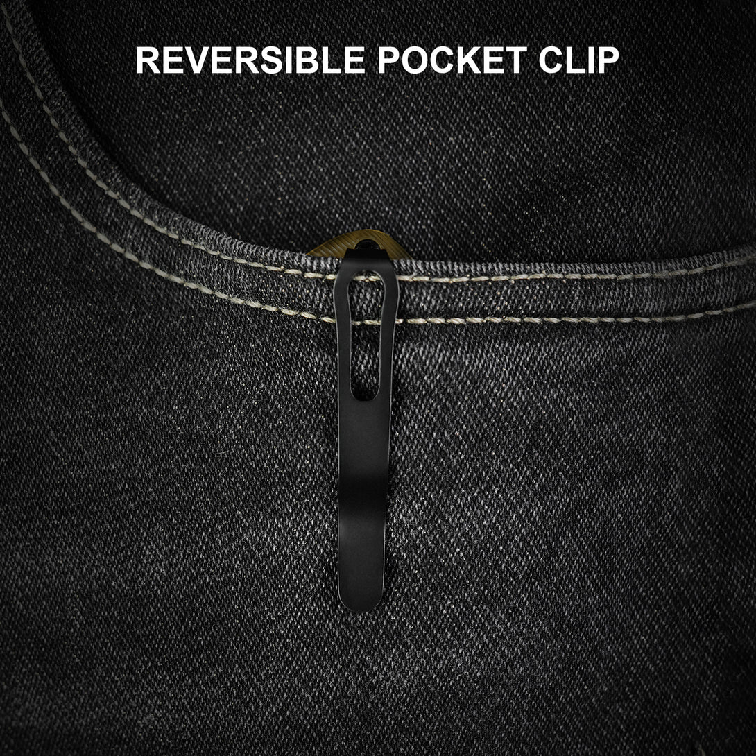 The vibrant PEI handle offers exceptional strength-to-weight ratio, standing up to hard use while keeping your EDC load light. The textured surface ensures a secure grip, and the reversible deep-carry pocket clip allows for discreet, comfortable carry all day long.