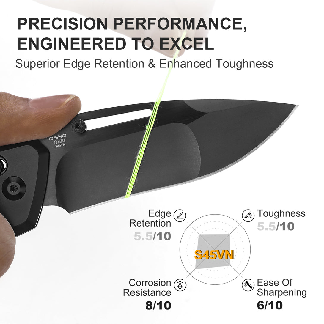 S45VN steel delivers exceptional edge retention (HRC 60-61) and improved toughness over its predecessor, making it ideal for demanding cutting tasks. With added niobium for refined grain structure, it offers better corrosion resistance and easier sharpening. Whether for outdoor, or EDC use, S45VN ensures long-lasting performance.