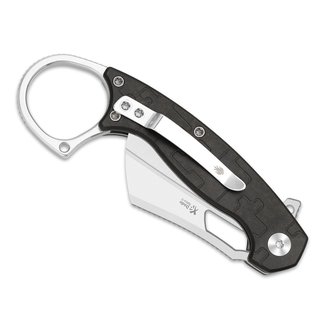 The modified Karambit merges the signature ring handle and curved profile of a Karambit with the broad, weight-forward edge of a recurve cleaver. Finger ring enables quick draw and secure grip for personal readiness while the refined arc is smoother and less aggressive than traditional Karambits.