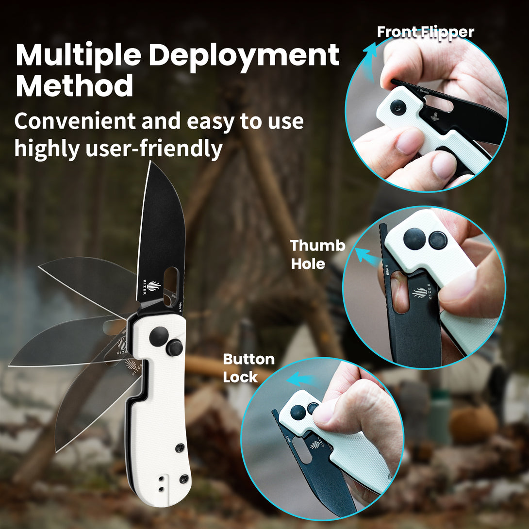 The finger hole quick-opening mechanism is convenient and easy to use, complemented by a nearly concealed front flipper, significantly saving pocket space.
