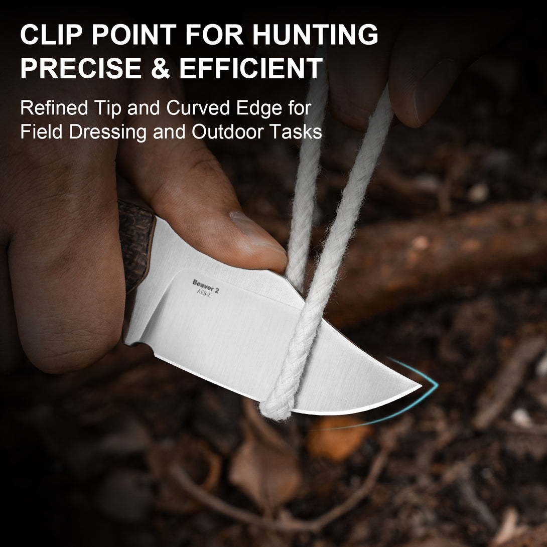Beaver 2 is built with a Clip Point blade, delivering a finely tapered tip for enhanced control and a gracefully curved edge that ensures smooth, precise cuts. Designed to excel in hunting applications—from field dressing to skinning—its refined geometry balances specialized performance with the versatility needed for a wide range of outdoor tasks.