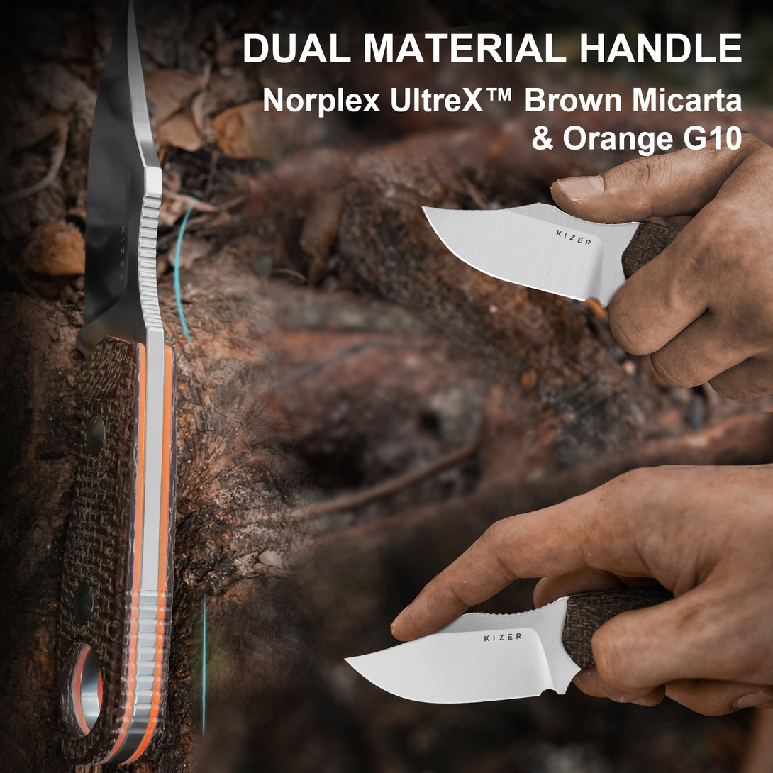 Kizer Beaver 2 fixed blade knife with sheath is made from premium AEB-L steel, offering exceptional toughness, fine edge sharpness, and corrosion resistance, even in humid or wet conditions.