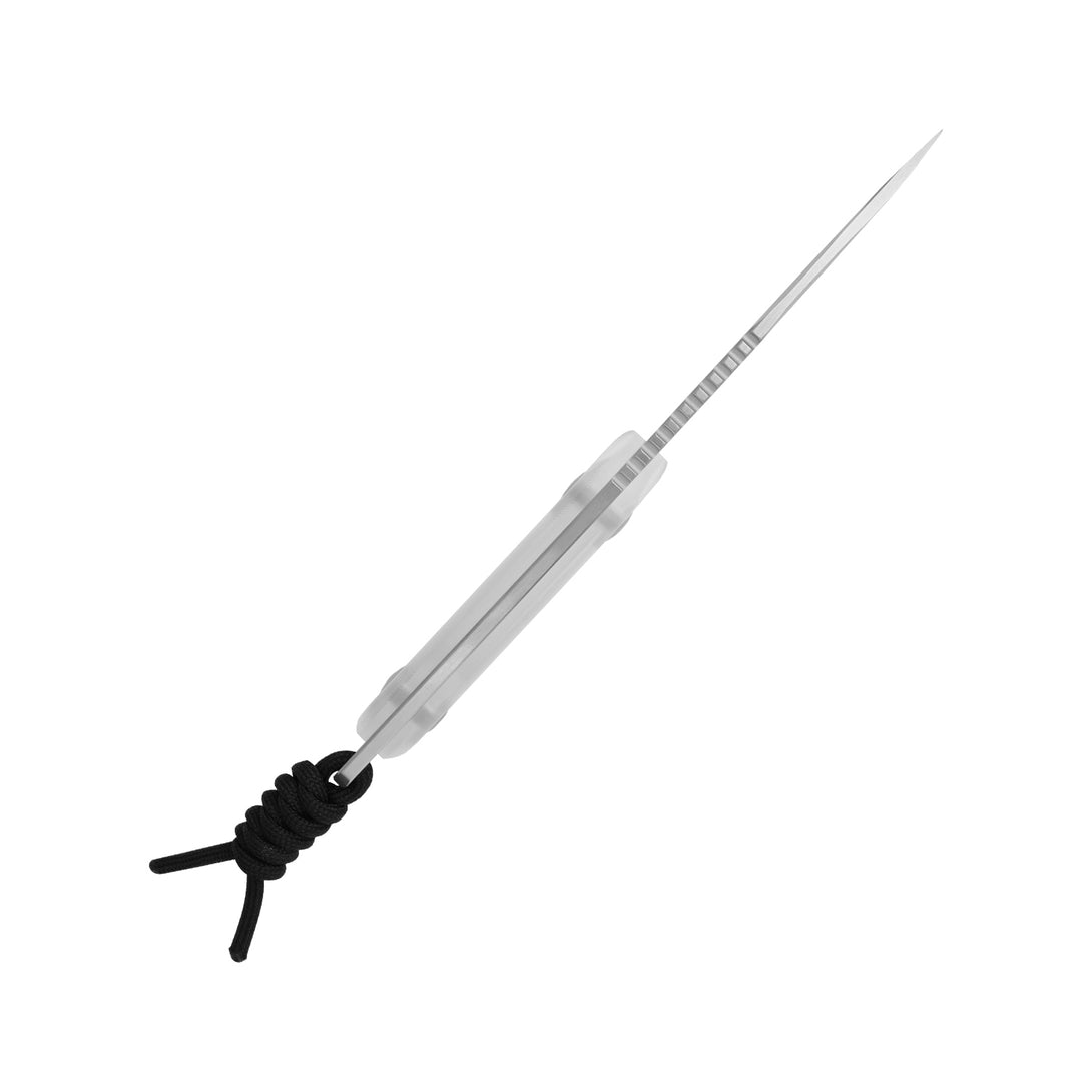 The Ice BUDDY's signature translucent white acrylic handle isn't just eye-catching - it's engineered for performance. Offering dust/water resistance and a featherlight 2.45oz weight, the textured grip provides superior control while showcasing the knife's internal architecture. Including premium Micarta and G10 to match your personal knife style and needs.