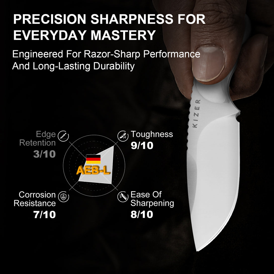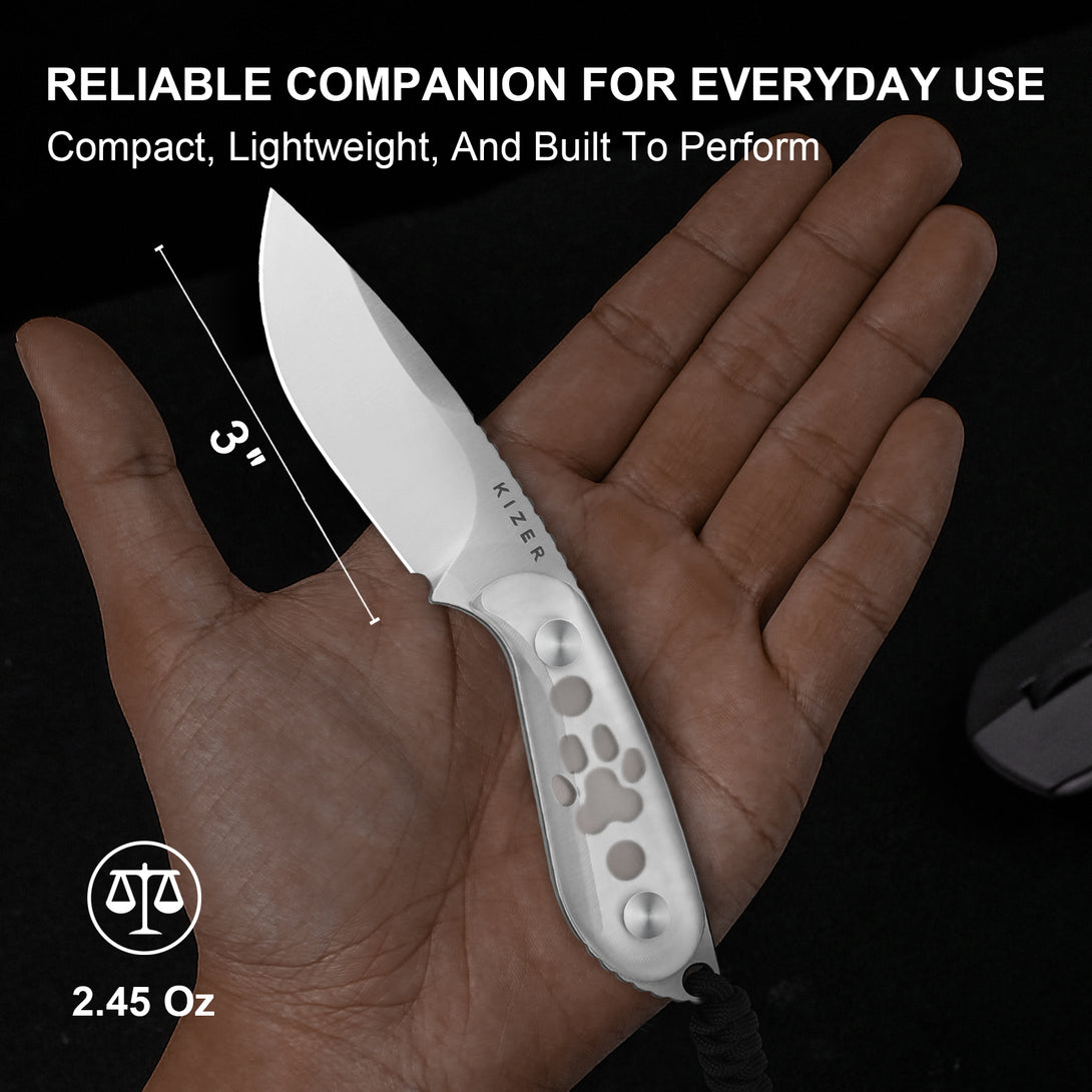 Meet the ICE BUDDY - where knife craftsmanship meets everyday functionality. Designed by Maksim Epifantsev, this fixed-blade knife features a precision-ground AEB-L steel blade. The satin-finished 3" drop-point blade slices effortlessly through daily tasks while making it the perfect EDC knife for urban and outdoor adventures alike.