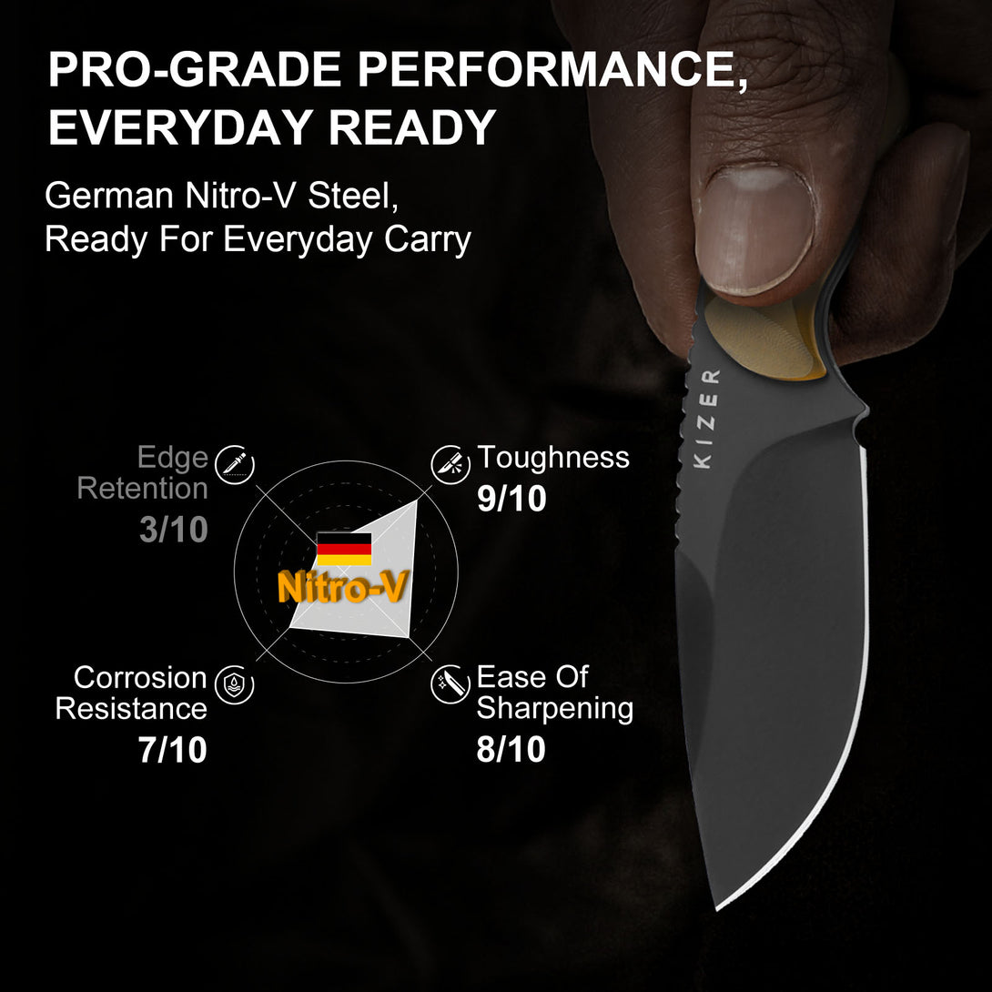 Featuring a high-performance Nitro-V steel blade with black PVD coating, this knife delivers exceptional edge retention and corrosion resistance. The drop-point blade handles everything from package opening to outdoor tasks with ease, while the lightweight design makes it ideal for everyday carry (EDC).