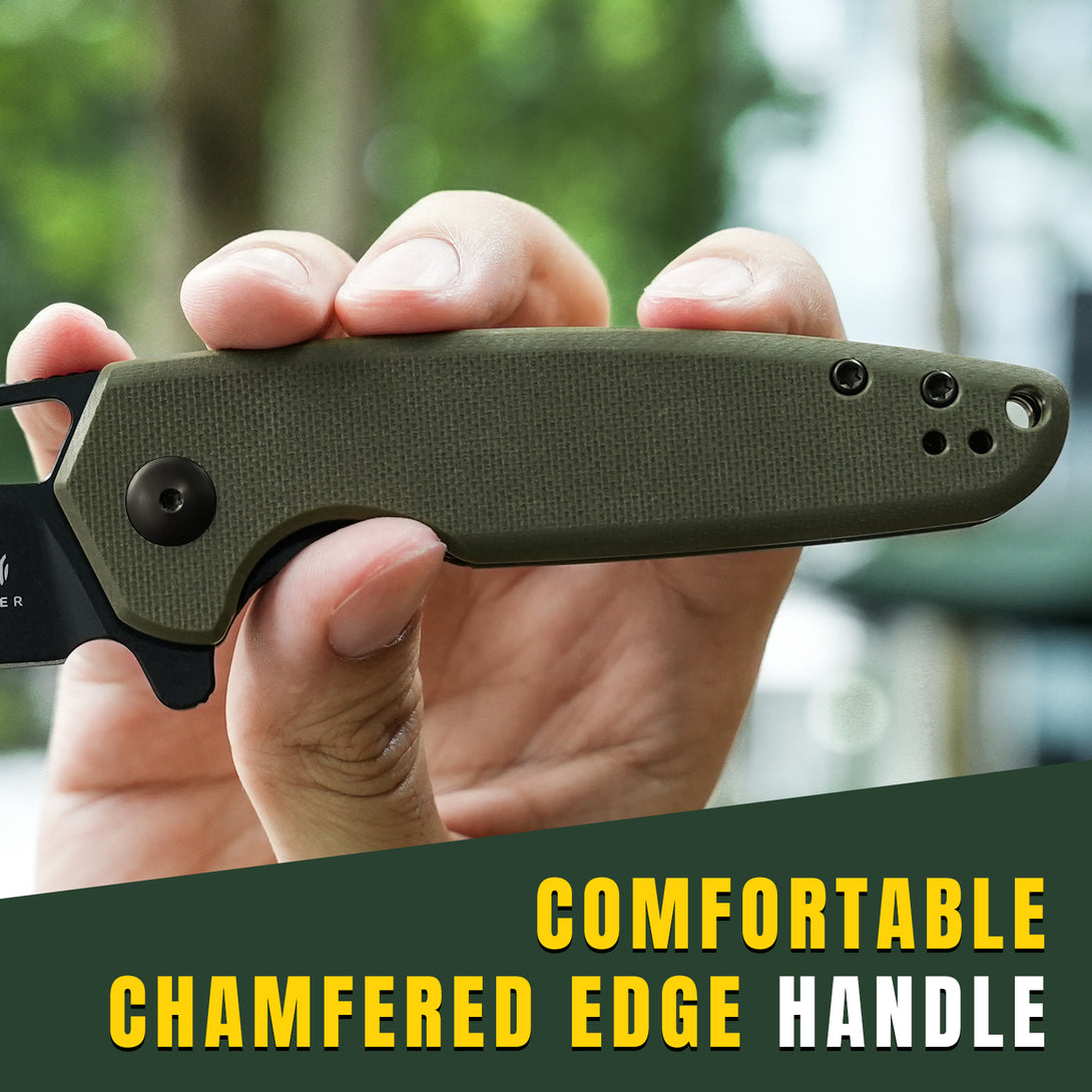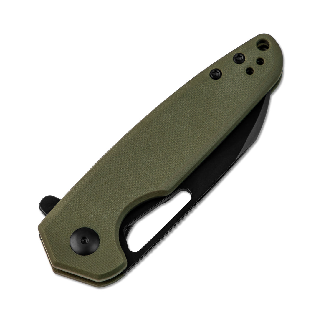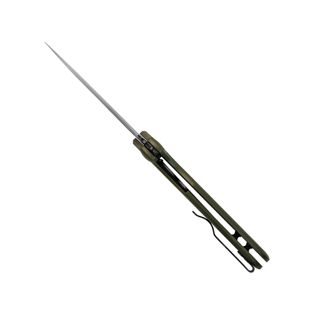 The Green G10 handle material offers a combination of durability and lightweight properties. It is known for being waterproof and corrosion-resistant, making it well-suited for use in harsh environments. Additionally, it provides an excellent grip, enhancing safety and ensuring secure handling of the knife.