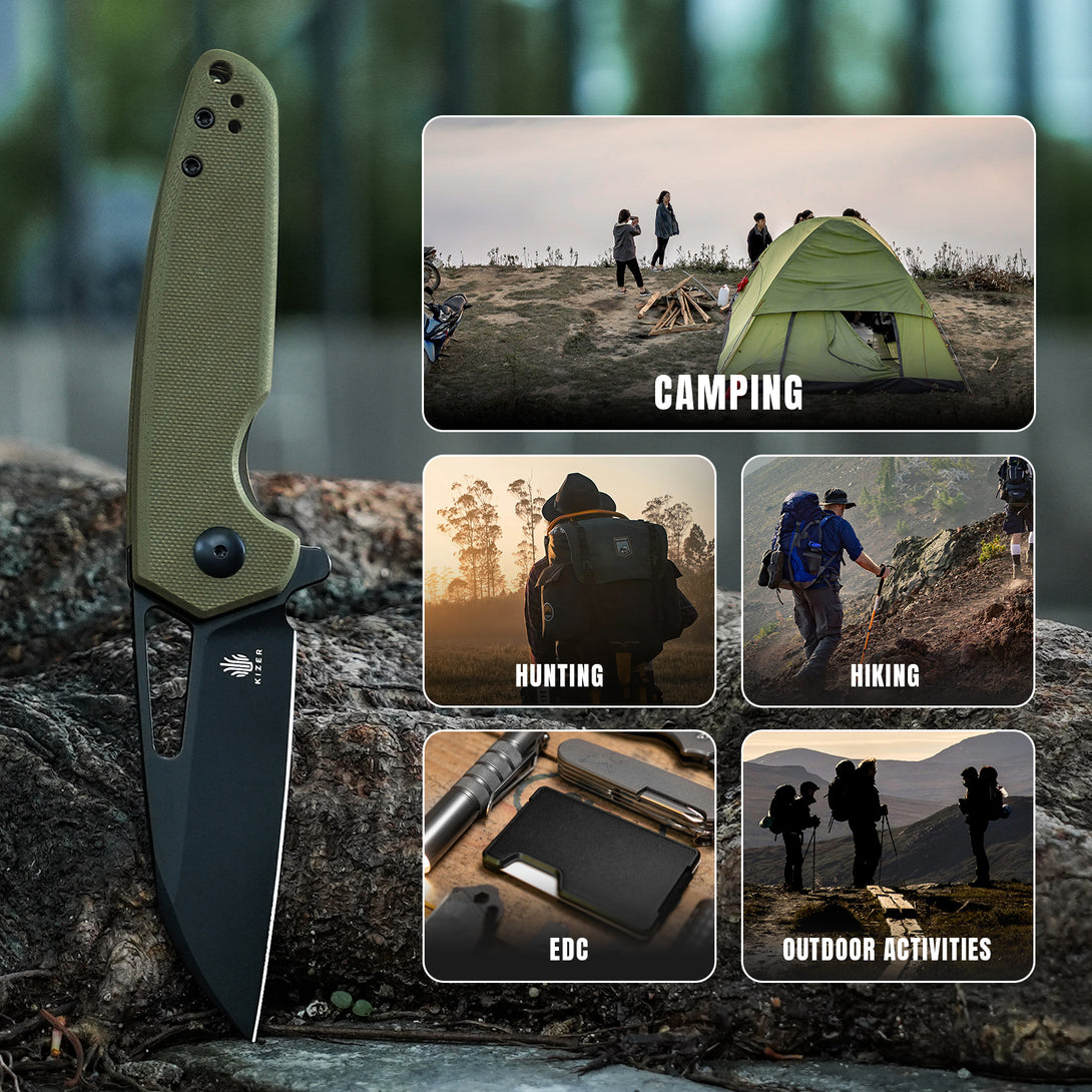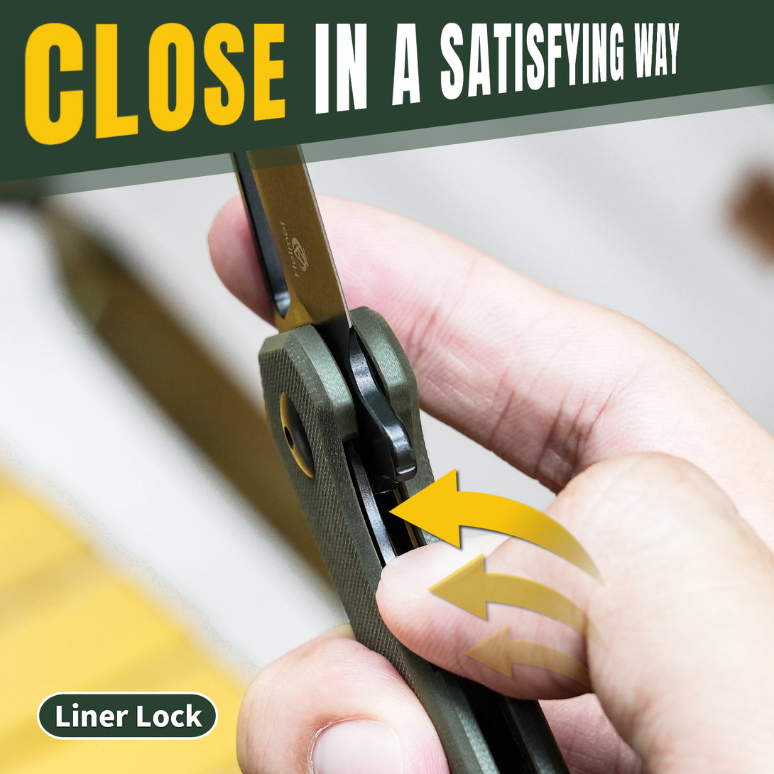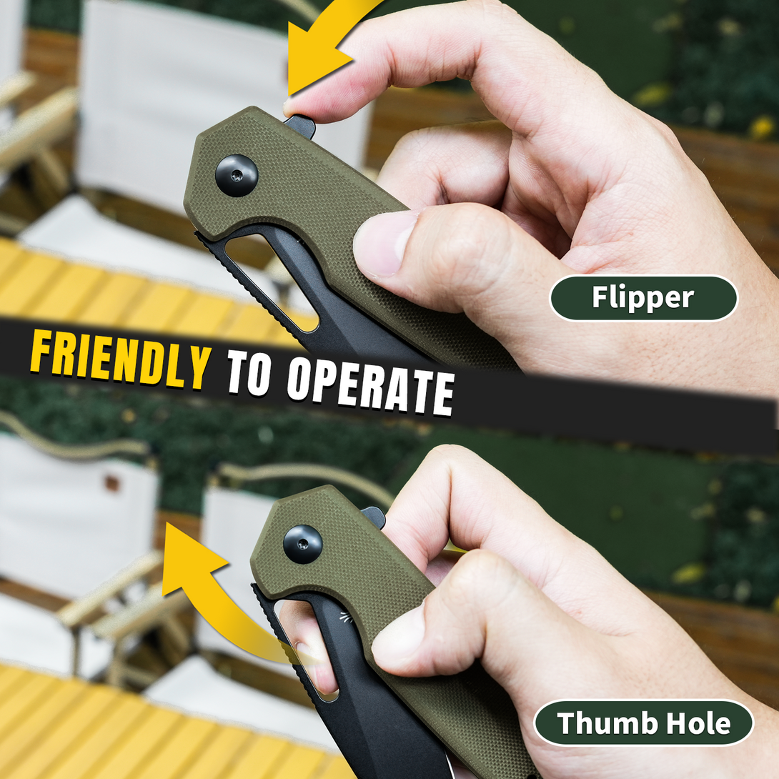 The knife offers multiple deployment methods, including a Thumb hole, Flipper, and Liner Lock mechanism. This versatile design allows for various ways to open and secure the blade, catering to individual preferences and providing convenient options for quick and easy access.