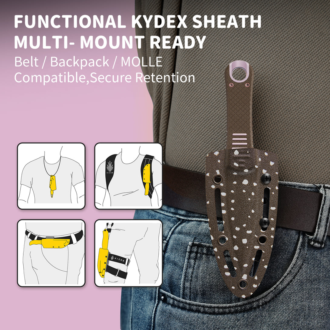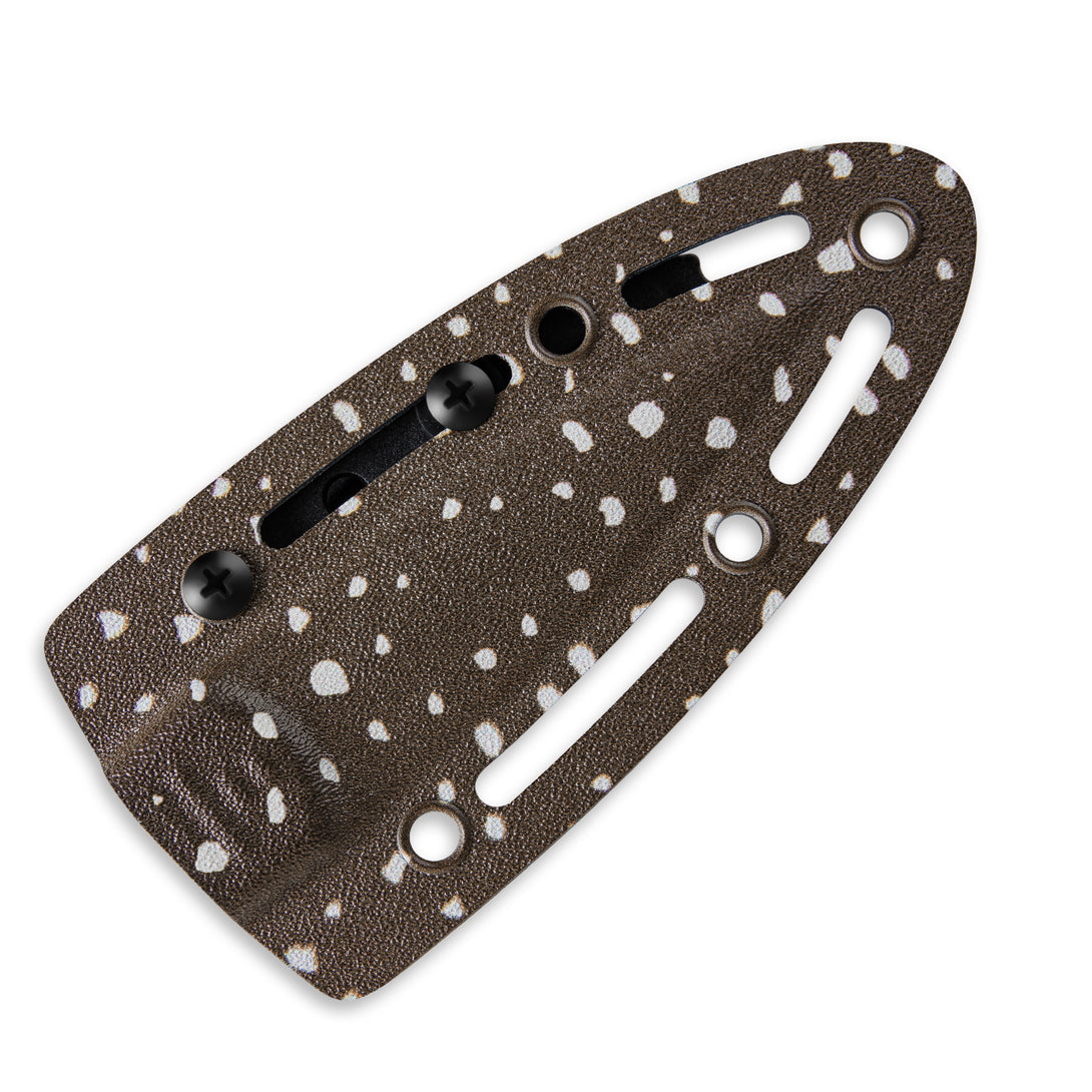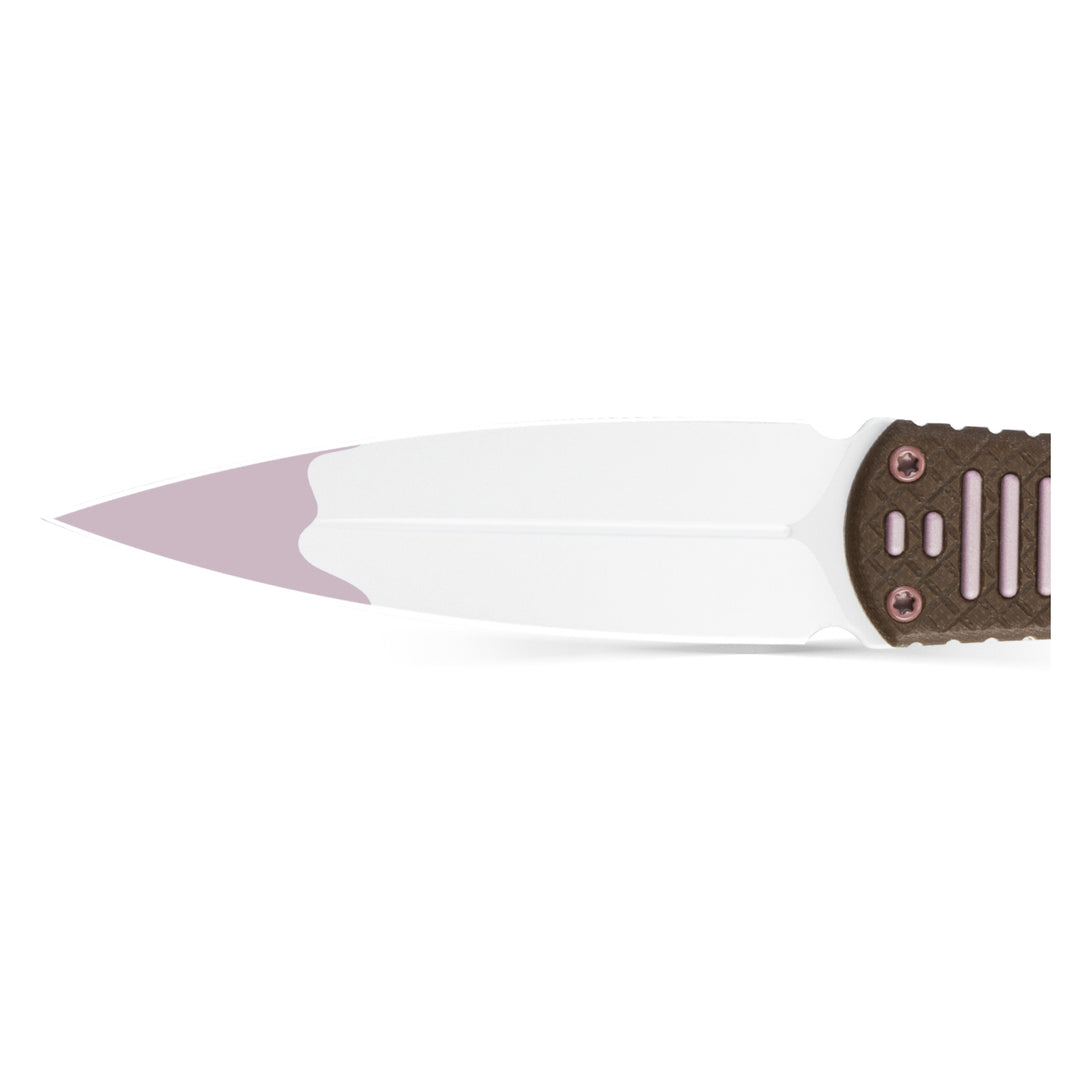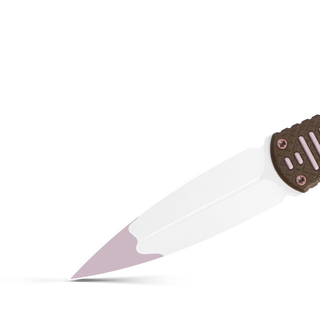 Inspired by everyone's favorite ice cream cone, this Hidden Agenda features a chocolate-brown G10 handle with authentic waffle cone texture for superior grip. The ice-cream coating blade delivers buttery-smooth cuts, while the peanut-speckled sheath adds a crunchy touch of fun.