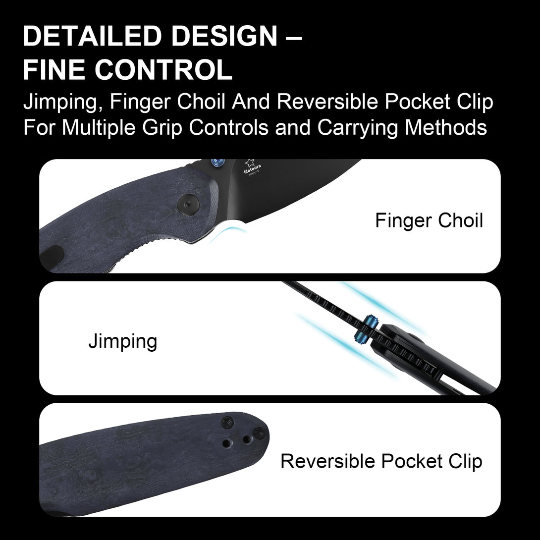 Every control surface serves a purpose: the spine's aggressive jimping transforms your thumb into a precision guidance system, while the finger choil creates a tactical pivot point for controlled cuts. Even the lock bar's textured surface ensures foolproof operation when milliseconds count.