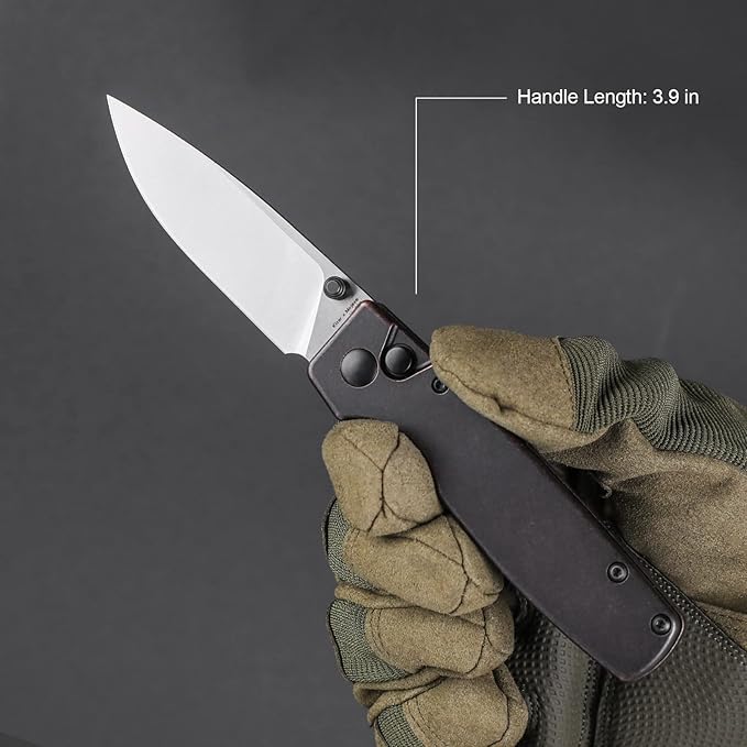 • Button Lock Pocket Knife: The button lock mechanism and well-known Kizer's Action makes its open action very snappy and close smoothly.