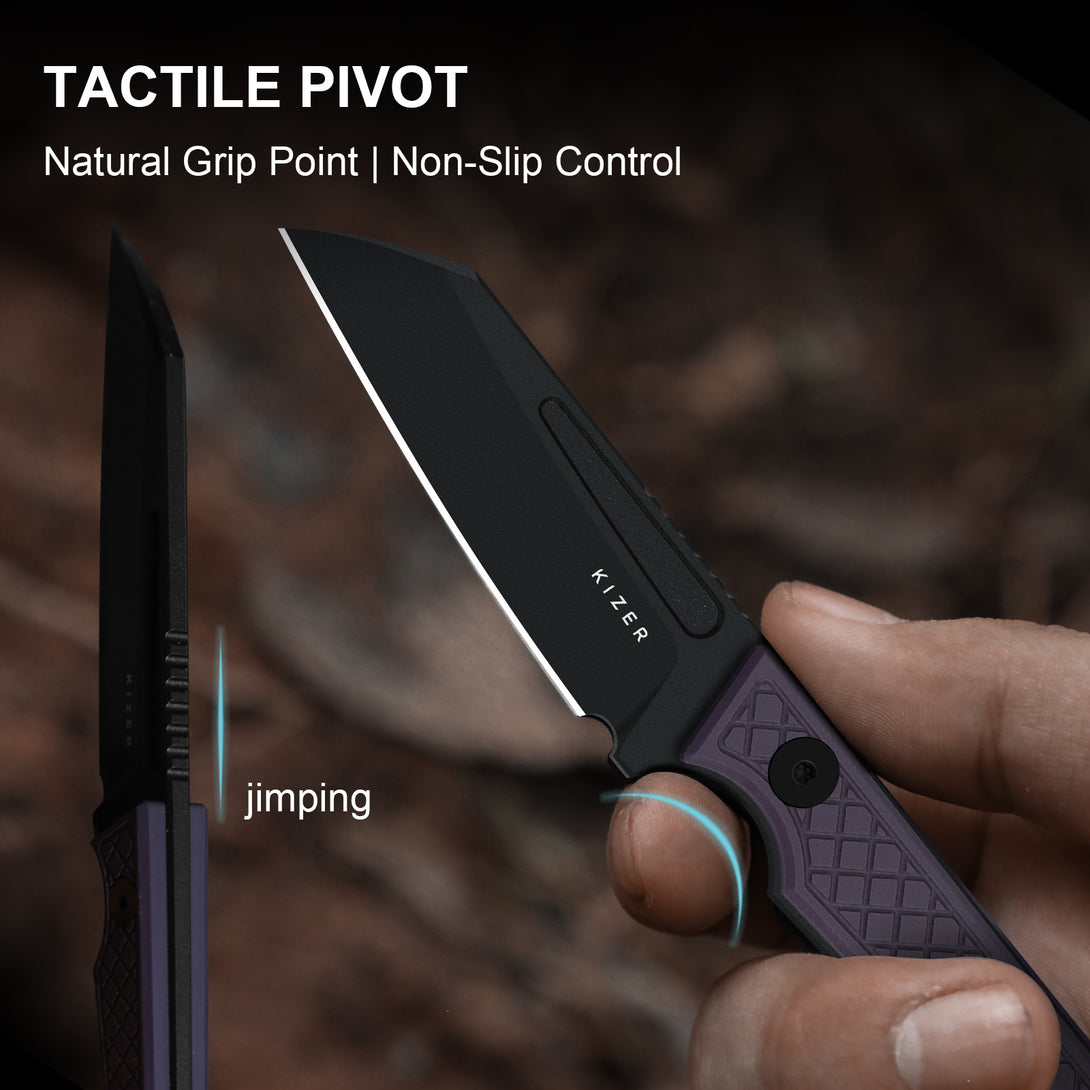 G10:The handle uses purple G10 material with r diamond grid texture for better grip.