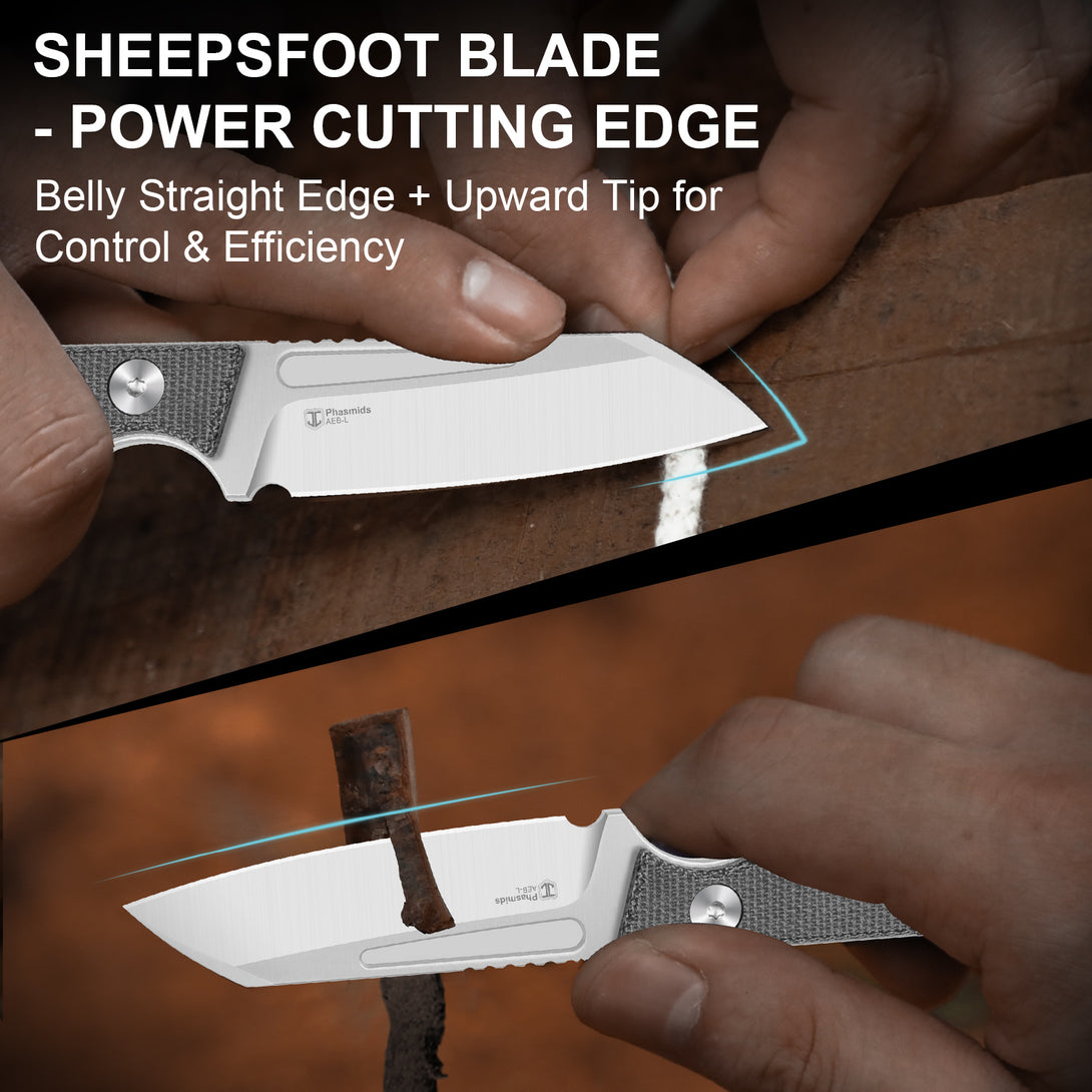 The sheepsfoot blade features a uninterrupted straight cutting edge that maximizes contact across material surfaces—making it ideal for controlled slicing of cardboard, rope, textiles, and more.