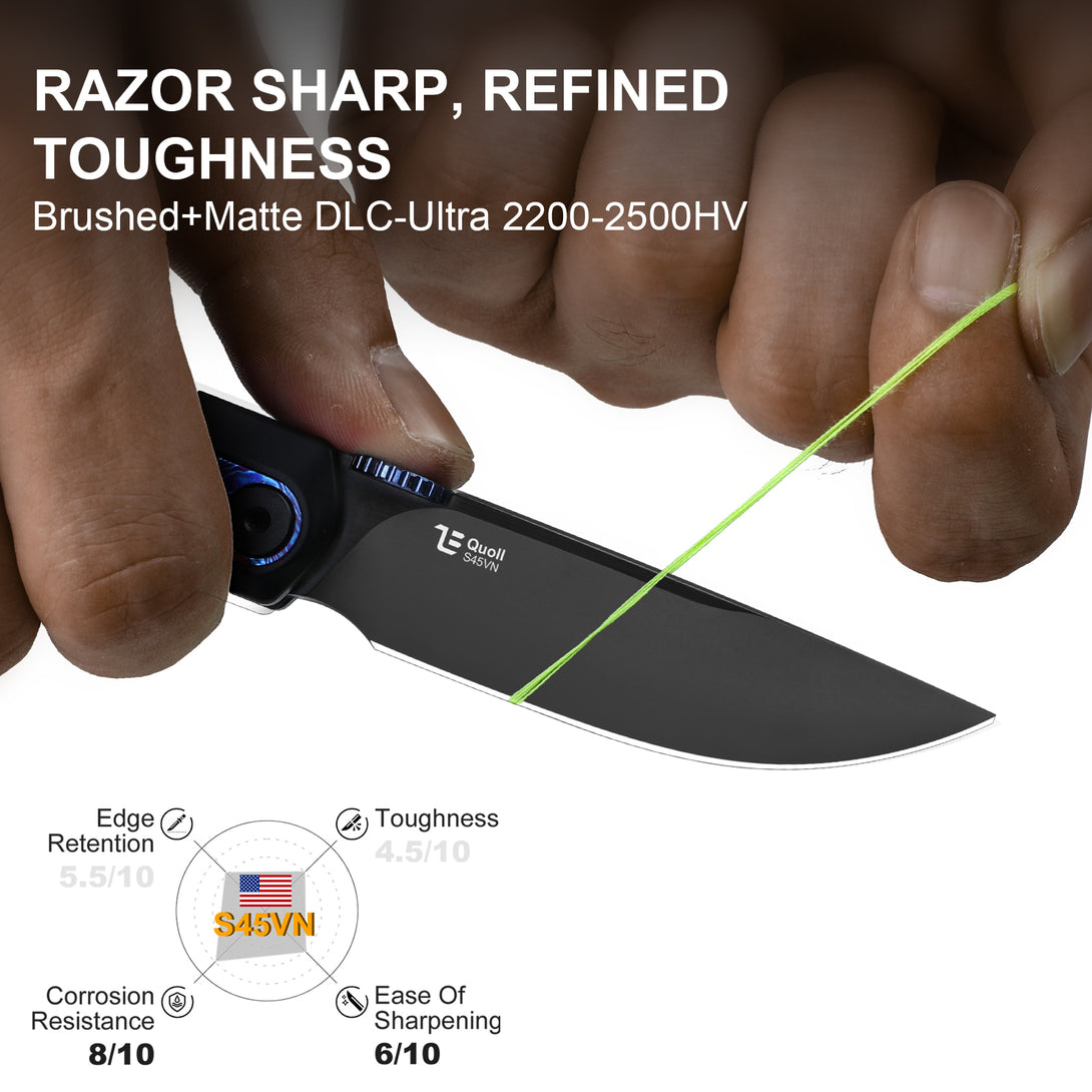Quoll | S45VN | Titanium & Titanium Damascus | Brushed | Matte DLC-Ultra | Ki3733A3