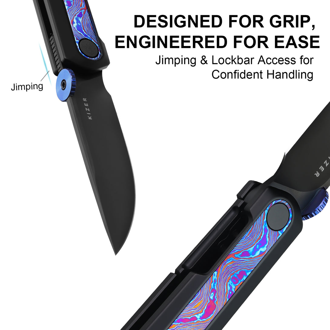 Aggressive jimping on the spine and thumb disk ensures a positive grip when you need it most. And for a smooth, one-handed close, the lockbar is carefully designed with extra thumb clearance for safe and easy disengagement.