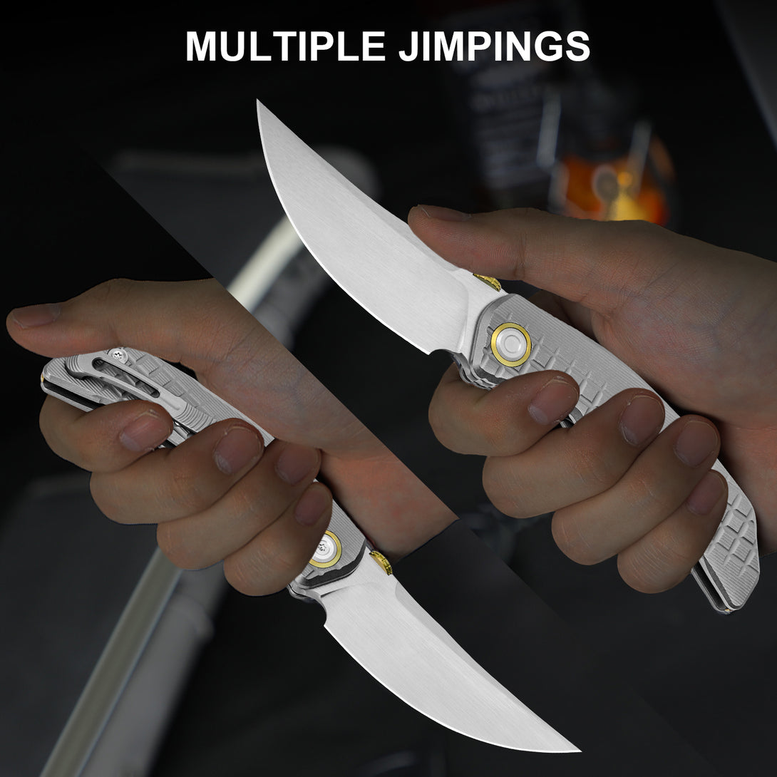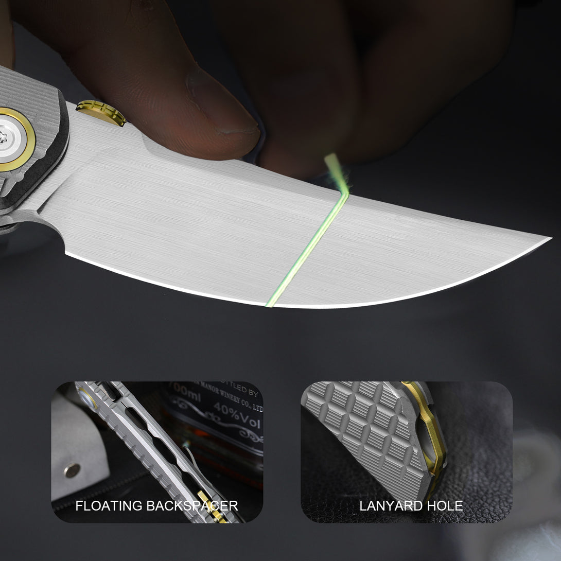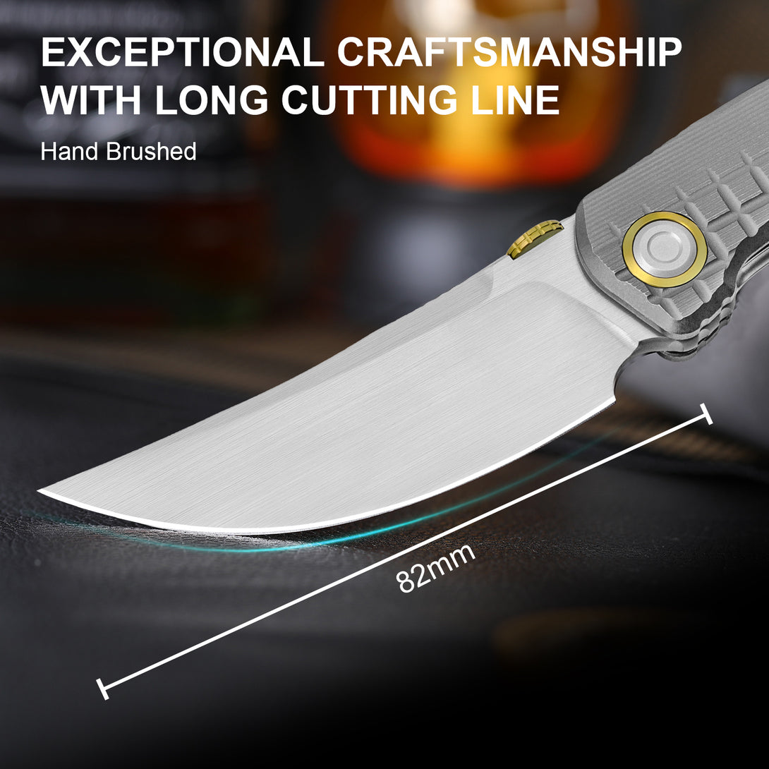 A refined EDC blade designed for performance and elegance, it combines a hand-brushed M390 trailing point blade with a lightweight titanium handle, delivering a perfect balance of strength and finesse.
