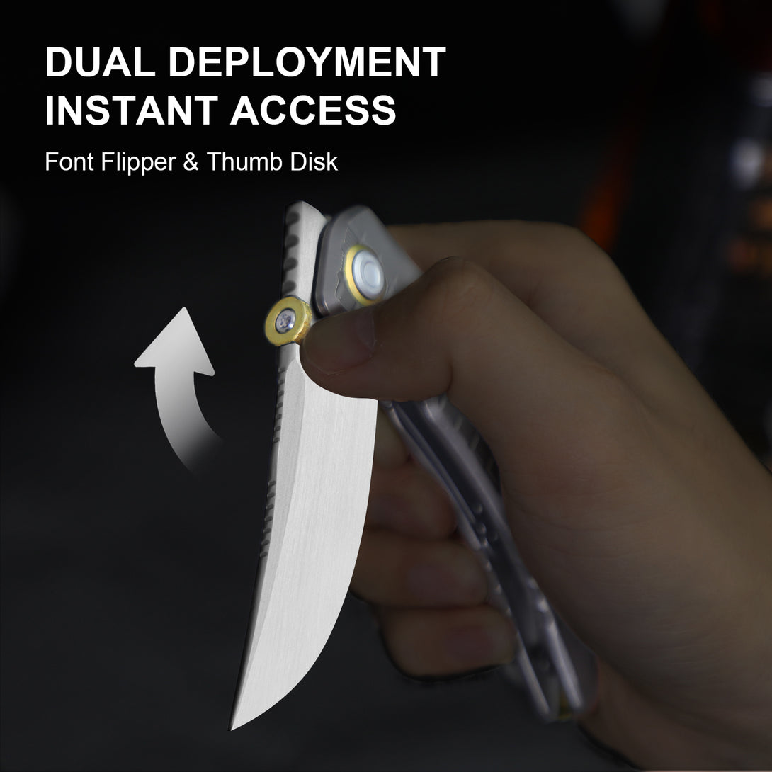 Thumb Disc Opener – Smooth, one-handed deployment for quick access when needed.