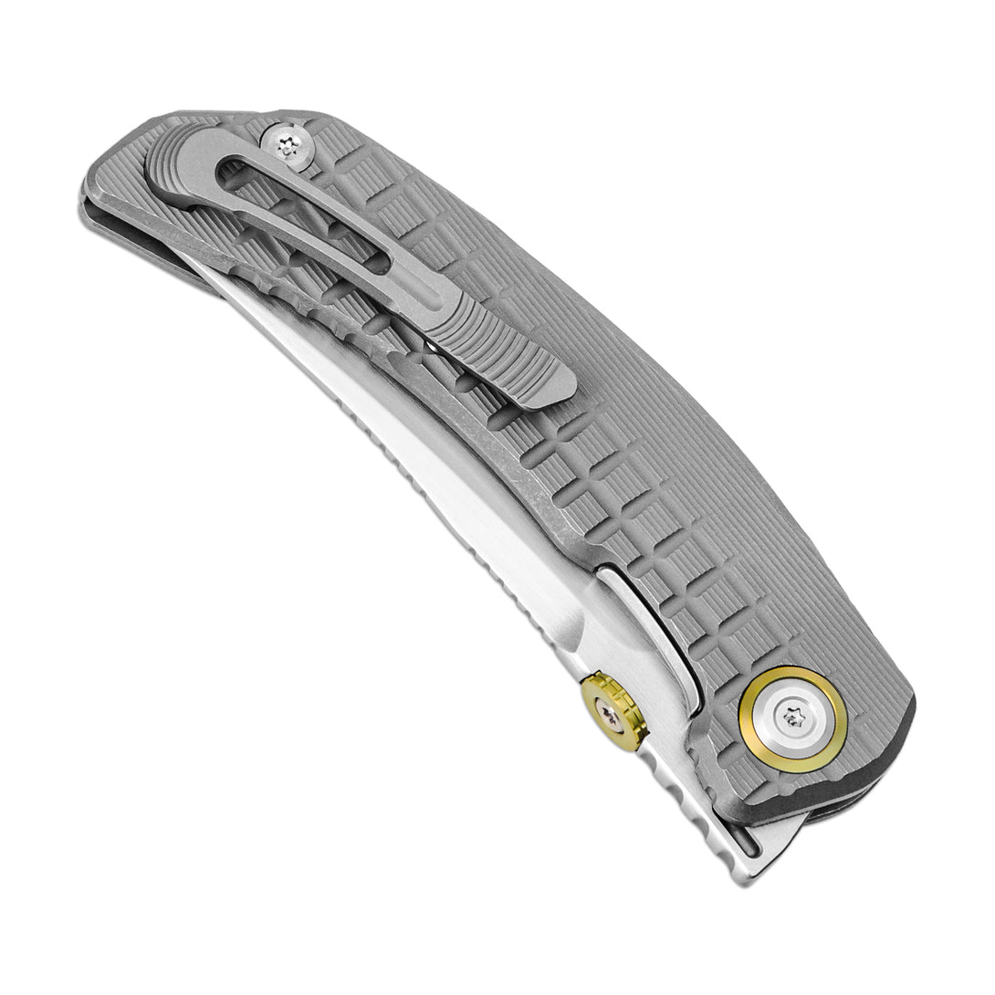 Deep-Carry Titanium Clip – Low-profile, non-reversible design for discreet everyday carry.