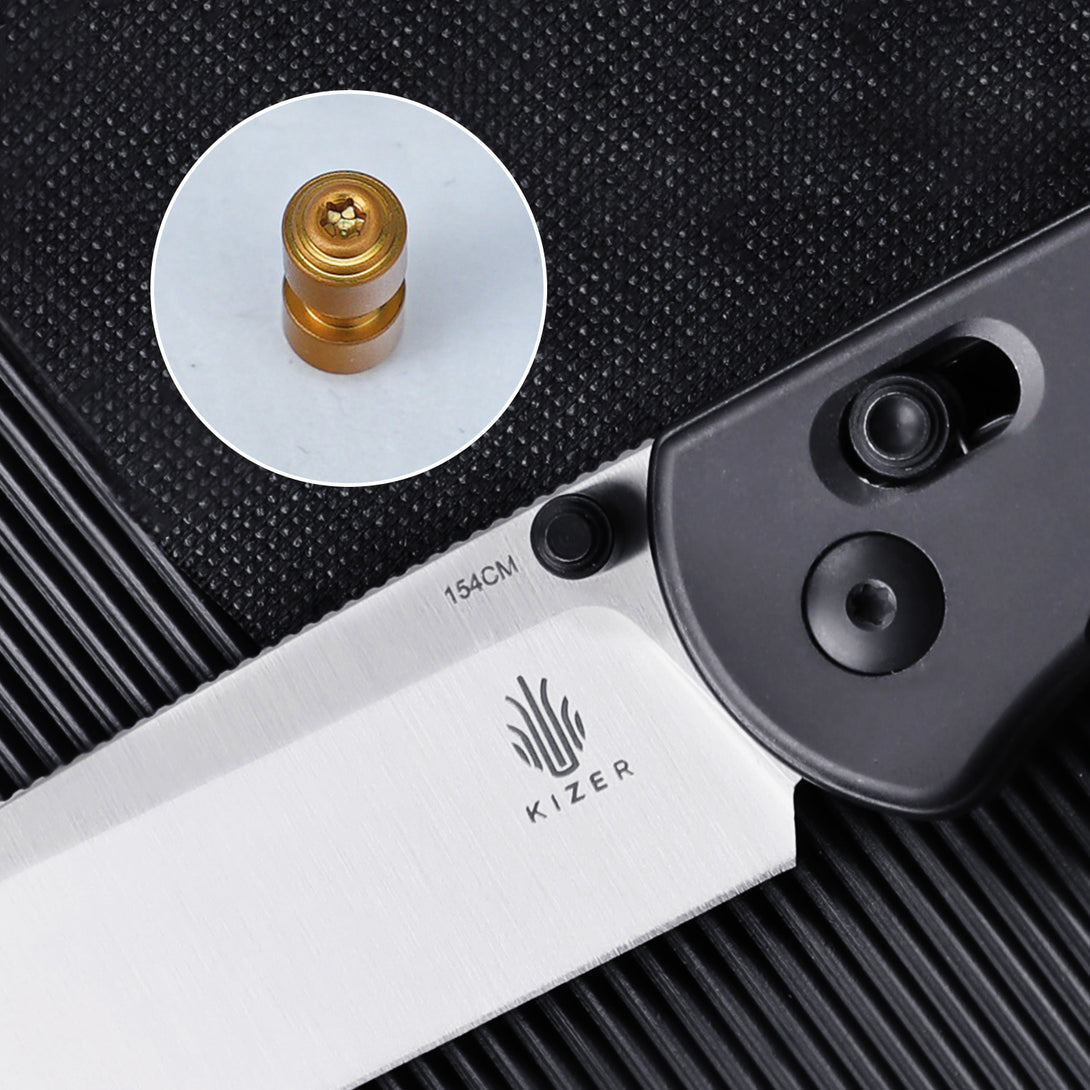 Time for something new? Our aluminum thumb stud kit fits great with Kizer models. It's a great way to add a personal touch to your EDC. Our precision aluminum thumb stud kit has been tested almost all we could get our hands on, and fits most Kizer models.