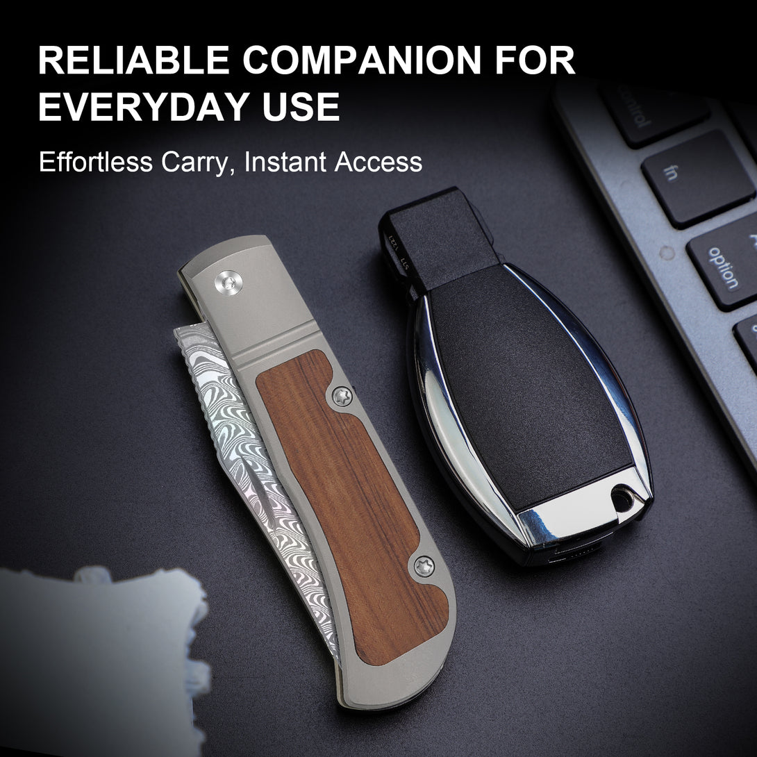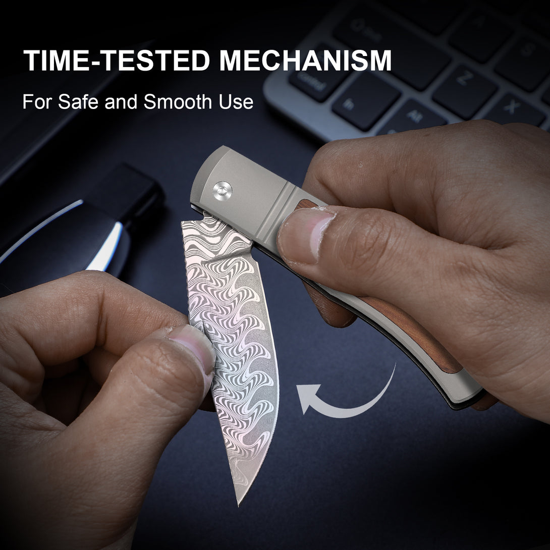 Trestle | Rainbow Damascus | Acid-washed | Titanium & Mkuruti Wood | V3761A3