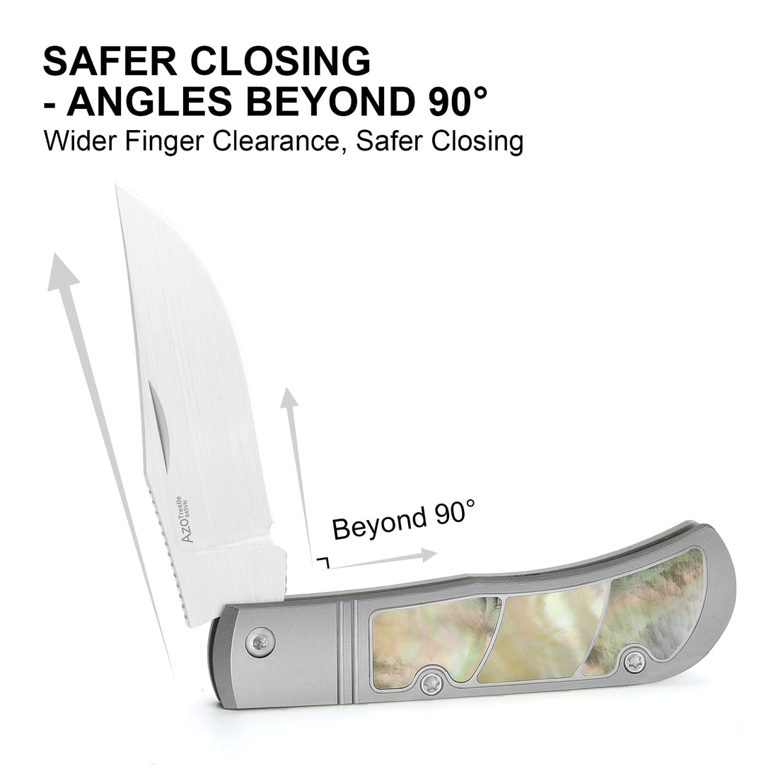 We made closing this knife safer than ever. Typical non-locking knives stop where your fingers are closest—around 90 degrees. Ours goes further, pausing beyond 90 degrees to create more space between the blade and your hand. Less risk, more peace of mind.