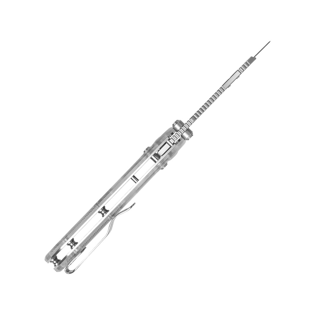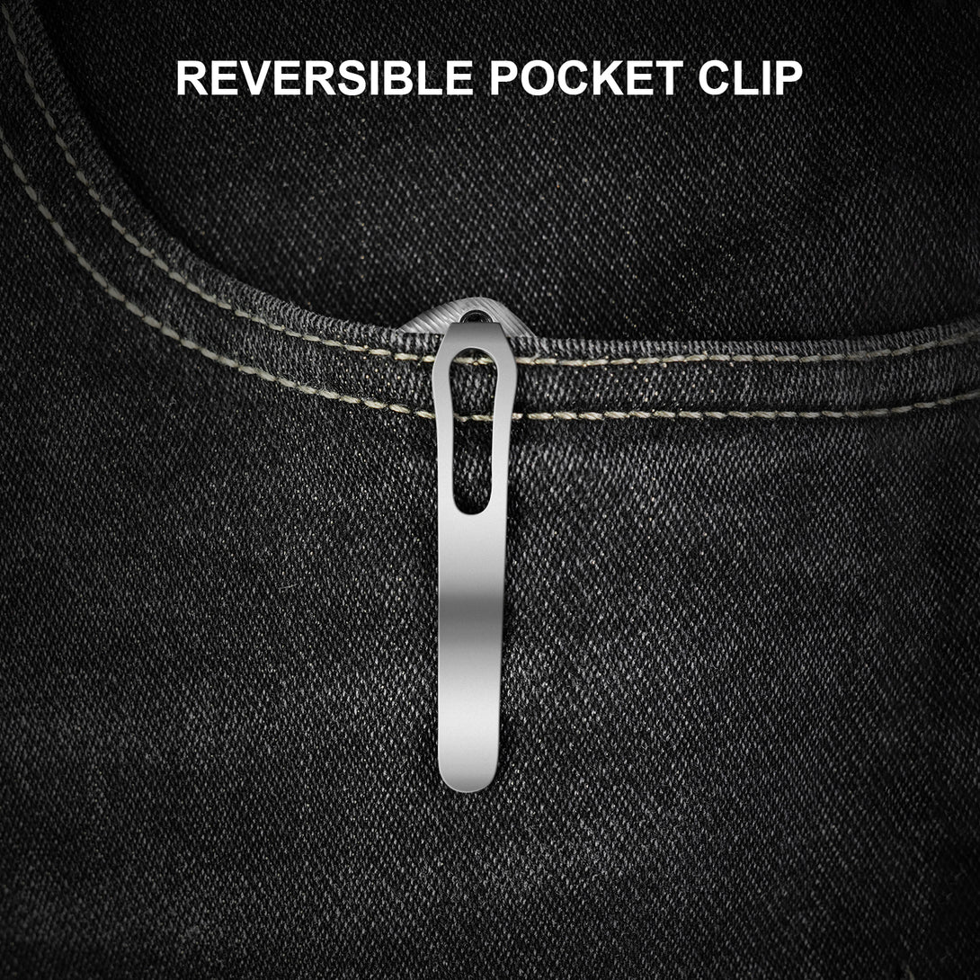 The lustrous white acrylic handle offers a striking contrast to the tactical blade, creating a knife that's as visually appealing as it is functional. Despite its sleek profile, the textured grip ensures secure handling, while the deep carry reversible clip allows for discreet everyday carry.