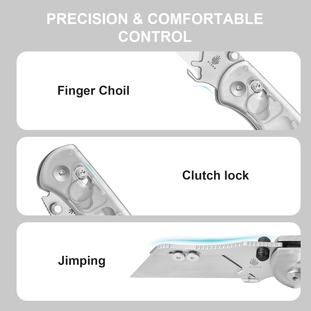 Featuring the patented Clutch-Lock system, this folding knife guarantees safe one-handed operation with thumb stud deployment. The smooth ball-bearing pivot enables lightning-fast access, making it ideal for quick cutting tasks or emergency situations - all while maintaining complete finger safety.