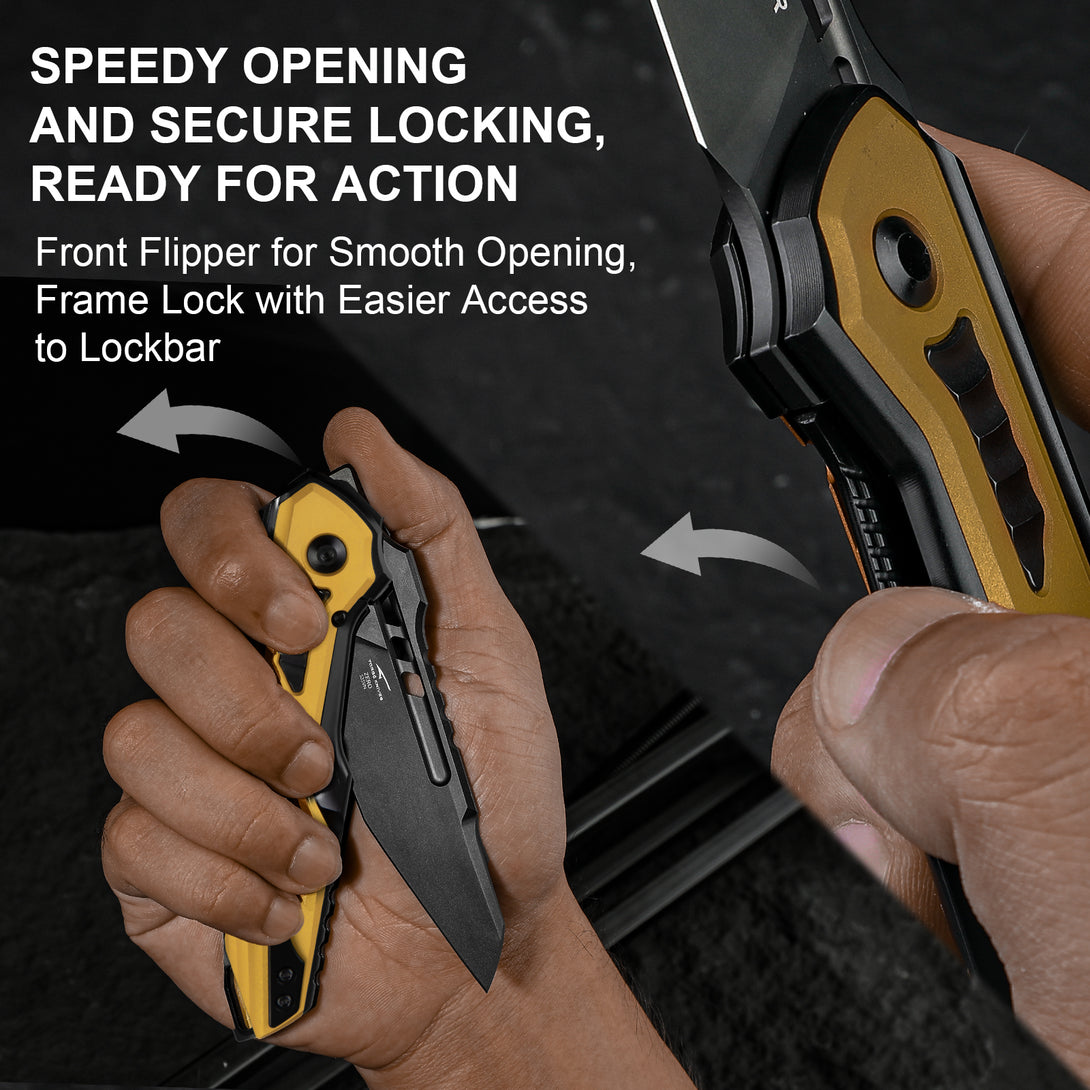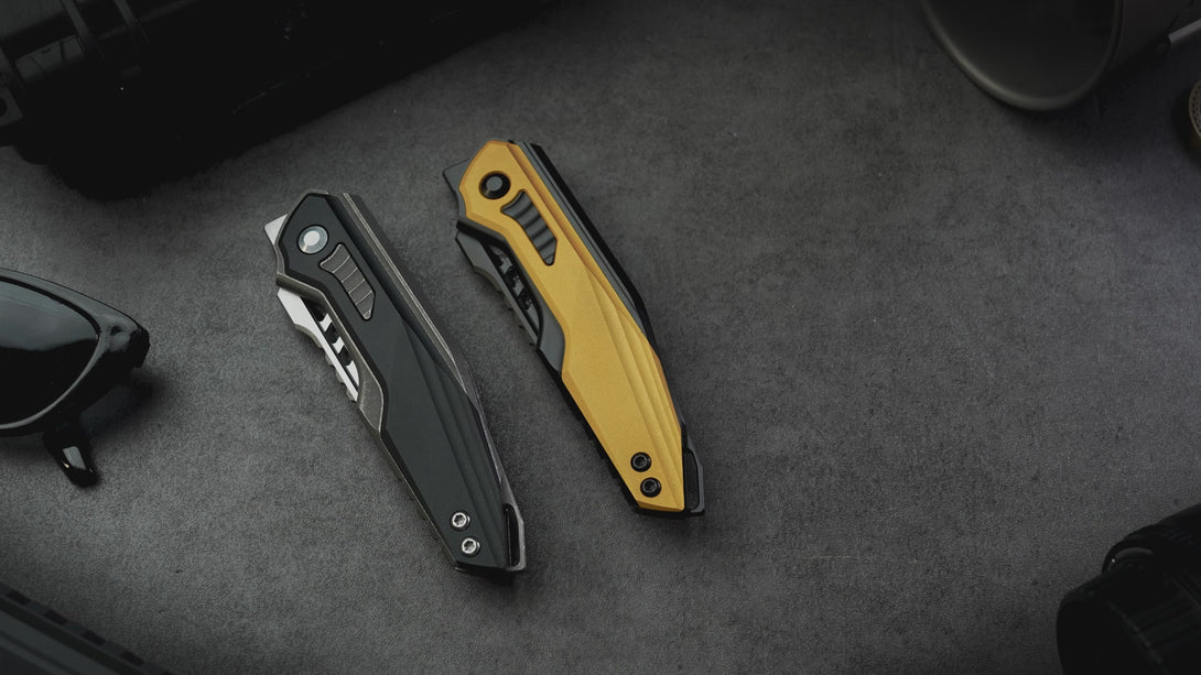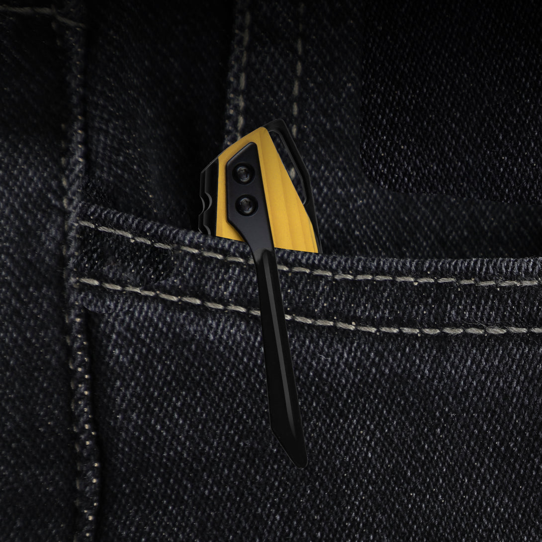 Features an S35VN blade with matte DLC-Ultra coating for enhanced wear and corrosion resistance,delivering a smooth, refined finish without harsh glare. Paired with a titanium handle and aluminum inlays in a bold yellow-black bumblebee contrast, it combines striking aesthetics with structural durability.